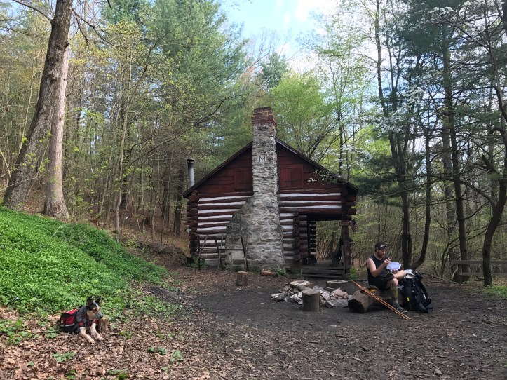 I was second or third in the group to leave quarry gap, but everyone passed me at some point. It’s frustrating to be last, especially when my feet hurt and I can’t push myself anymore than I already am. Two long days back to back wasn’t the best idea, but the shelters are also awkwardly distanced so it’s logistically a better choice. Anyway, I had to really work to let go of being “slow.” This is part of why it’s better for me to hike alone. Around 10am, I hit the cabin with a little stream and good ole disco taking a little rest in the sun.