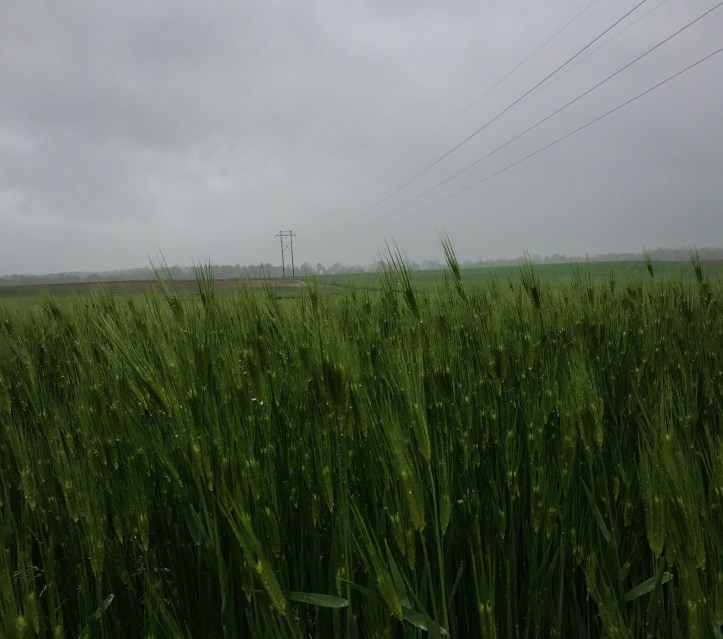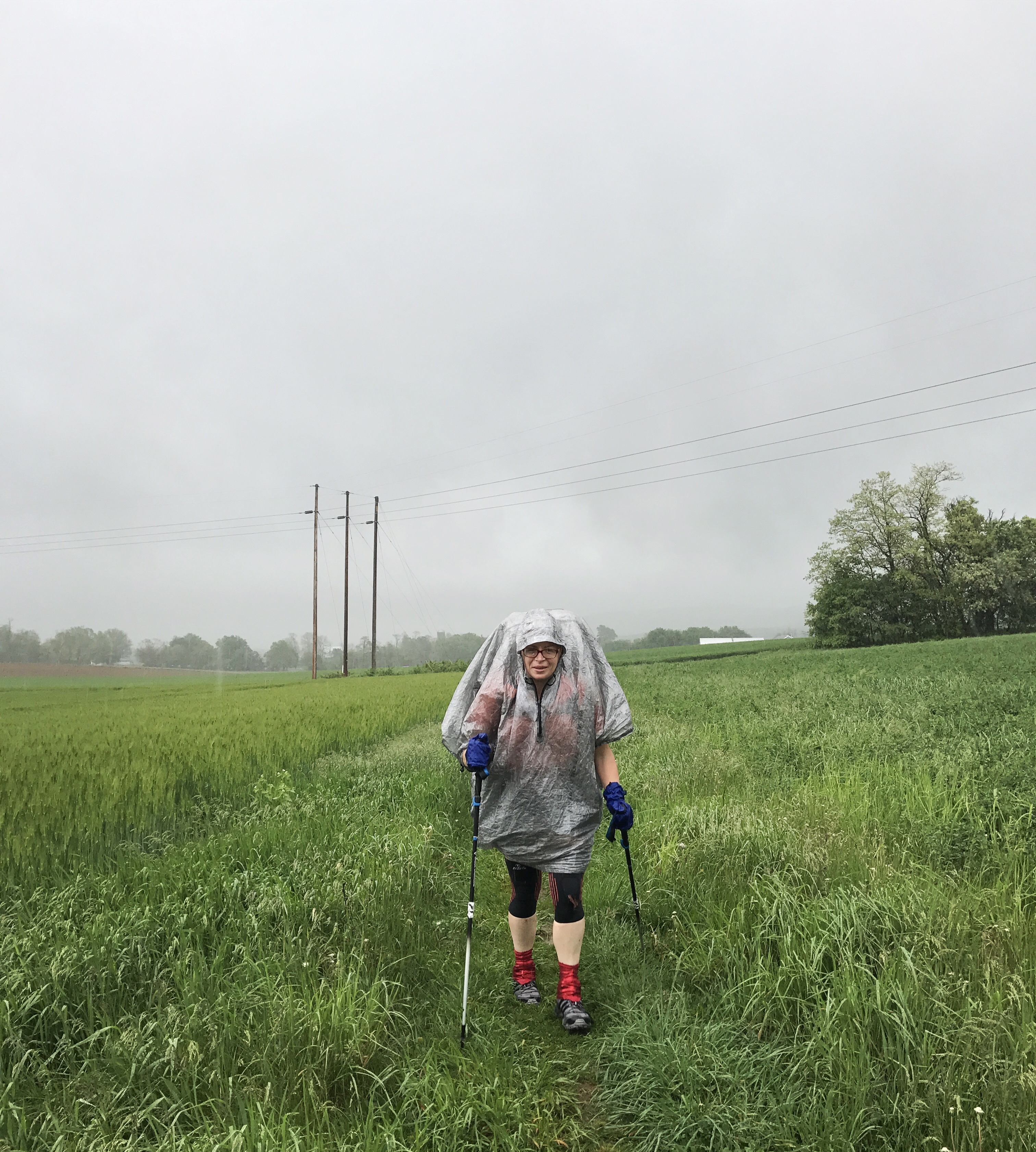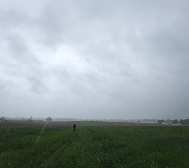Jimmy made a remark about going through it, and I thought for sure he was wrong. Nope. We went through the middle of the open field, which led to a series of other fields where we got pelted with wind and cold rain for the next 40 minutes.