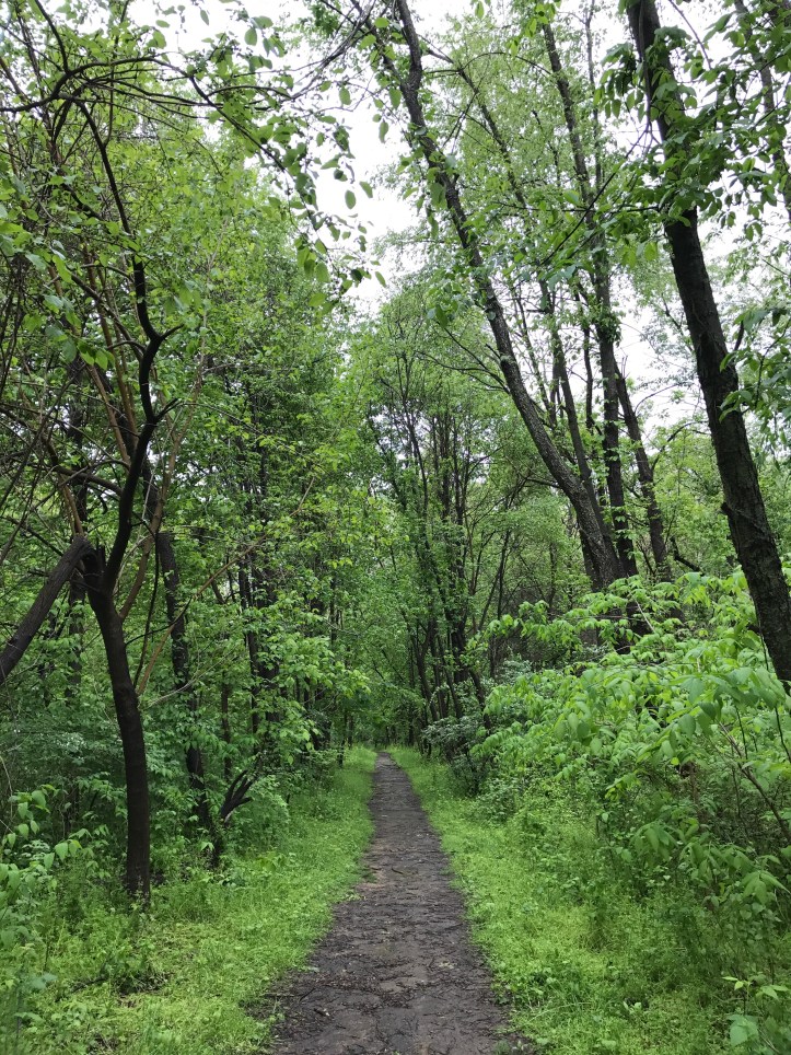After turning onto the main trail from the shelter, I made my way up a soggy, gradual climb which would be one of very few inclines today. The rain drummed against the hood of my coat, and I felt so happy to be sloshing and scrambling up the hillside listening to the rain instead of sitting in the car on the highway staring a break lights. I ran into Jimmy a little up the way, and he questioned our sanity and the point of wearing clothes at all. We both laughed at our tendency to step around the deeper puddles even though our feet were thoroughly soaked.