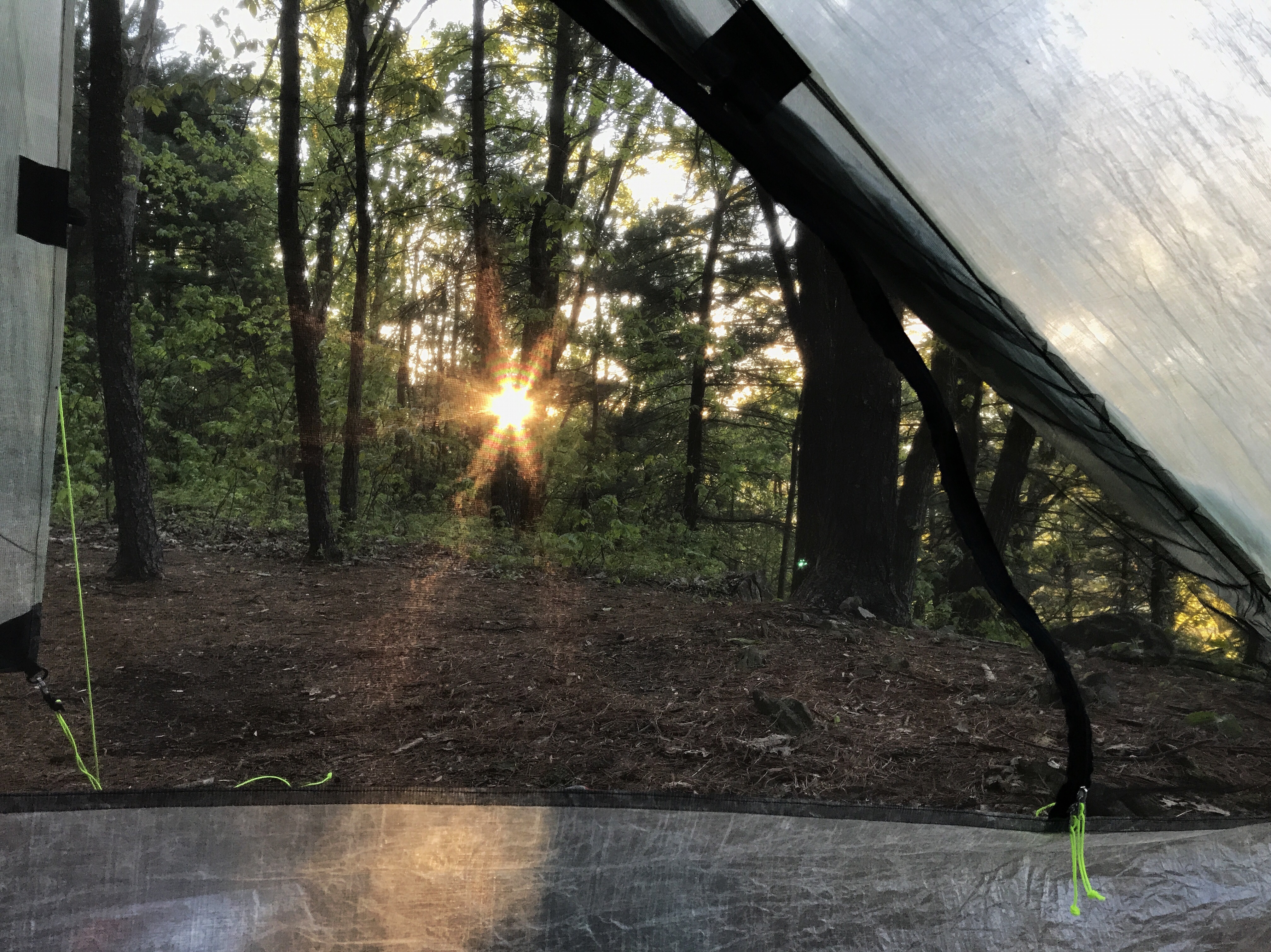 After that experience, I untied our food bags and brought them over to the little firing. No sign of stirring from Zack or the street, but I felt eager to get moving because of the temperatures, so I started packing up the gear in my tent. As I mixed peanut butter into my muesli, Zack crawled out of his tent. He made himself coffee and ate a granola bar with peanut butter and honey on top. The straight, whose trail name is Wall Street, which I should probably use instead of calling him the straight, came out of his tent shortly thereafter. He stood there with his perfectly groomed beard and remarked about how it was nice that the cold mornings were behind us. Meanwhile, Zach is holding his gloved hands up to his little pocket rocket flame for warmth and I’m wearing 85% of the clothing I brought with me. Zach and I both grunted in his direction and went about our routines.