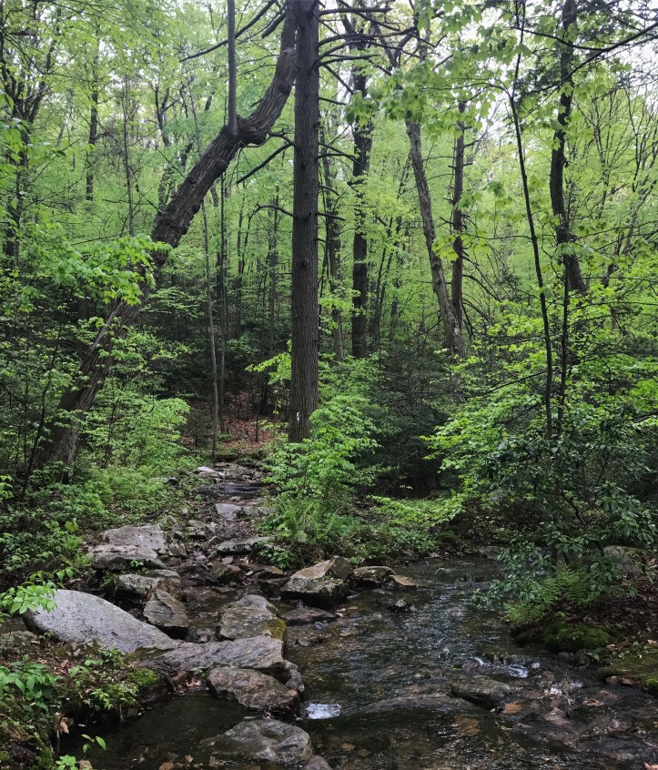 I stayed ahead of chrissy and jimmy through a flat section that is a total blur. Then there was a short descent into a rock hopping steam crossing.