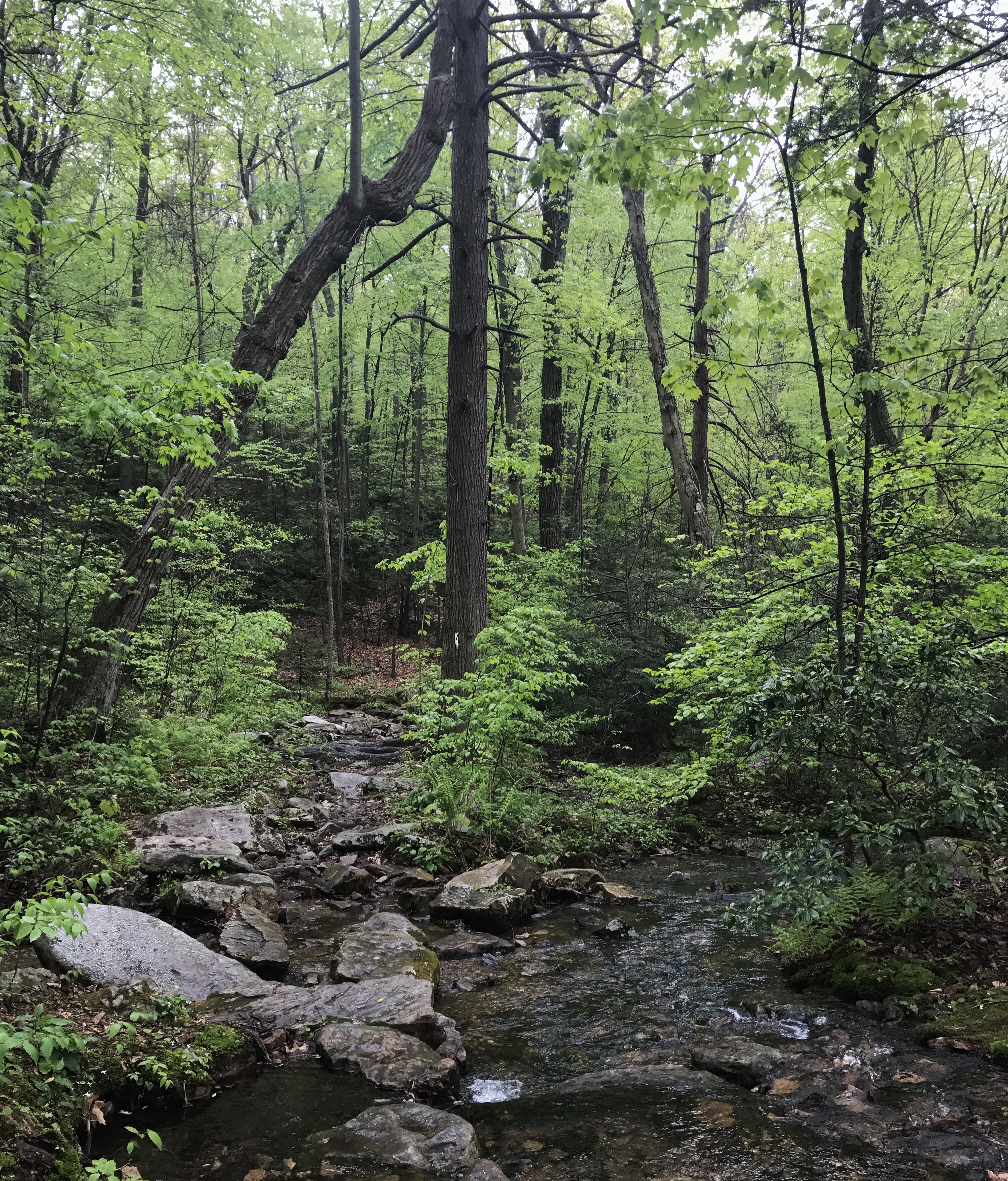I stayed ahead of chrissy and jimmy through a flat section that is a total blur. Then there was a short descent into a rock hopping steam crossing.