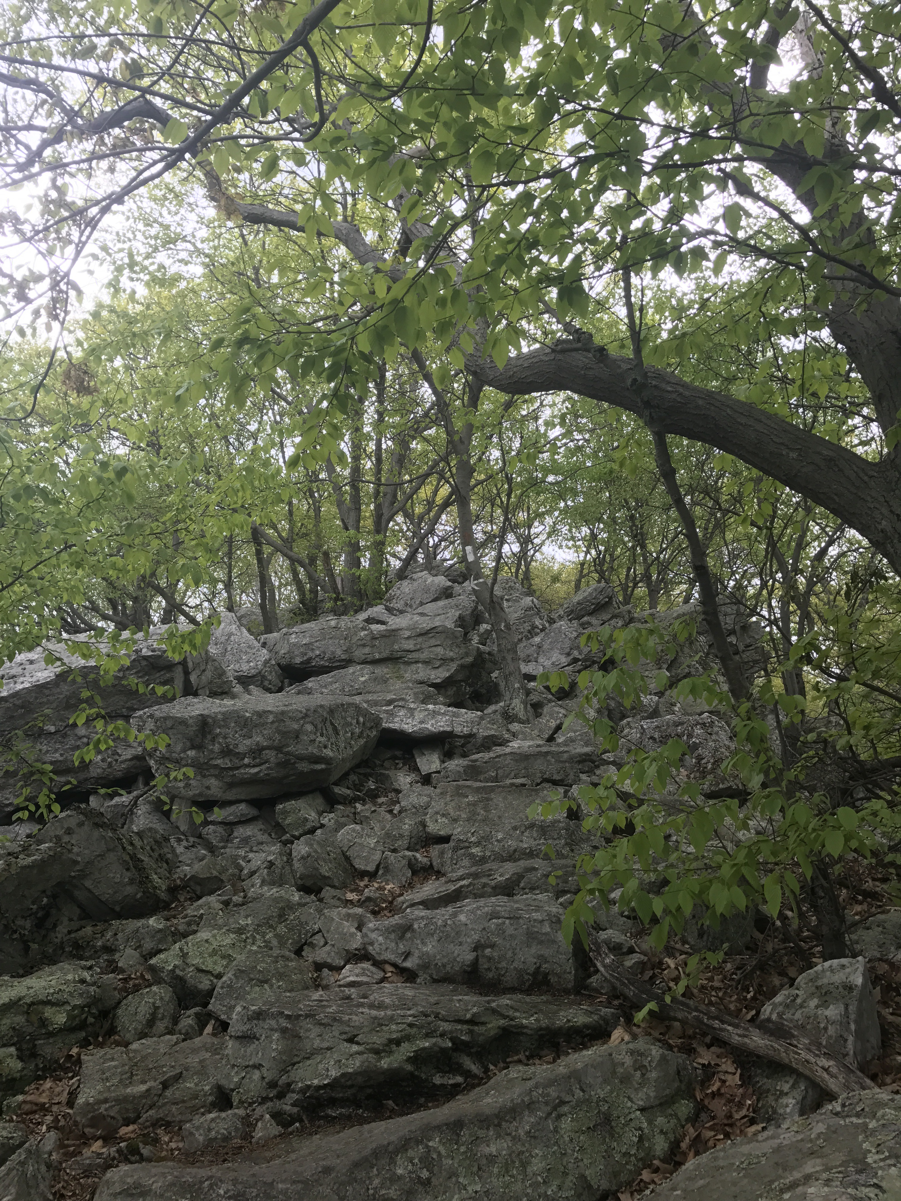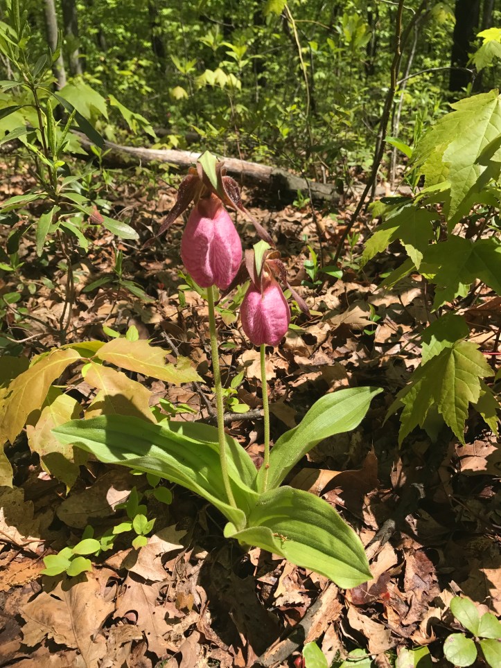 Followed by a nice walk along the ridge. Only a few boulder hopping sections today, but a couple of long gradual descents that made for tired quads. The woods were filled with older trees and there were pockets of bird song and the occasional stream crossing. I saw a total of 13 lady slippers today. Wonder what is about Pennsylvania that they love so much.