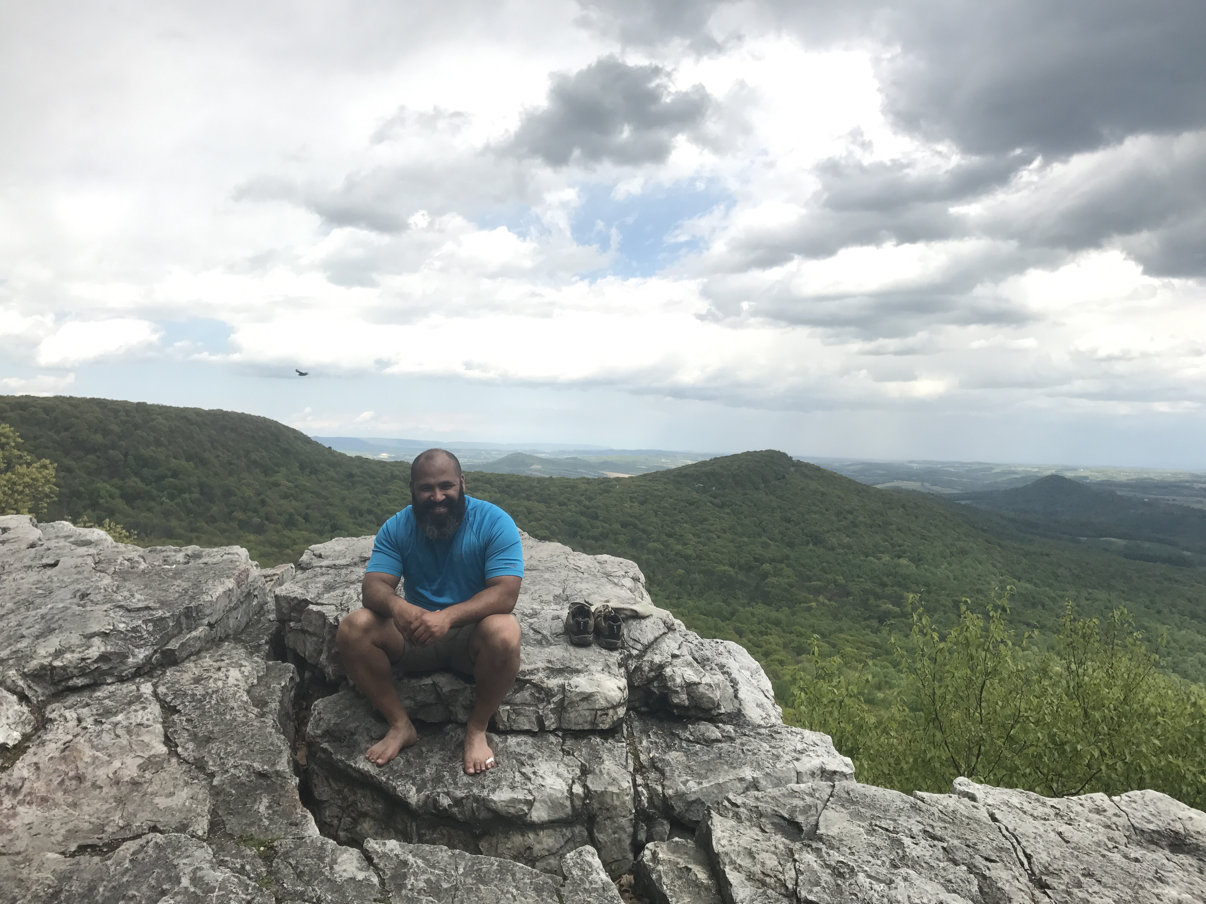 Jimmy moved on and I sat with angel and ate a snack until it started to drizzle. As I was moving my pack, the wind picked up and we got a 45 second hail storm. So confusing. And thankfully over as quickly as it started, but it cooled me off enough that I had to keep walking. The trip from there to the pinnacle was surprisingly flat, but there were a few menacing boulder sections.