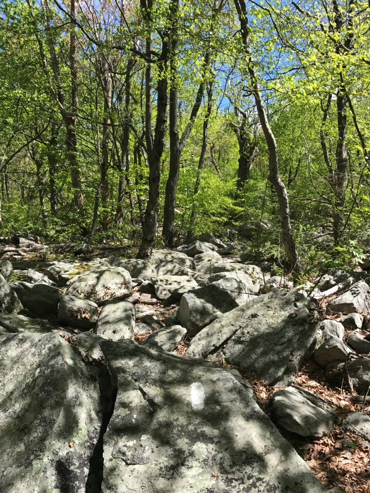 The rocks finally abated after passing Allentown hiking club shelter. The rest of the group was ahead of us from lunch onward and there was some question as to how far we might go. It felt like a shit show at one point because I wasn’t sure what to do about water (stockpile for a campsite with no water? count on going all the way to our discussed destination where there would be water?) and chrissy took a wrong turn because she was fooled by some bogus blazes. It felt somewhat chaotic for like an hour, so I decided on a backup spot to camp and a backup water plan and kept on walking. by that point the terrain had transitioned to a wide road-like trail, which felt so good on my sore feet.
