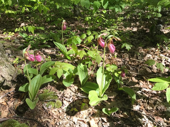 Thankfully the trail didn’t get much rockier than any other point in the day. My feet were sore at that point, but my shin held up really well today. I saw 56 lady slippers today. Unbelievable. There were clusters of up to 14 at a time. also saw a new little yellow flower.
