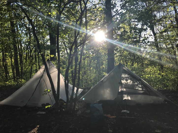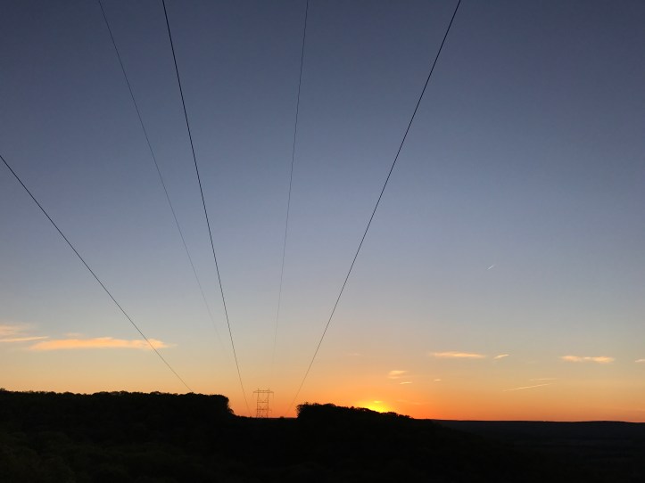 And the sunset! Because we camped at Tripoli campsite (not all the way in the bottom thankfully), which is just north of power lines. Now I’m listening to trees in the wind, a bug thwacking against the side of my tent, and angel snoring. Our tents are all up close and personal because the site is kind of small. Time to massage my feet and calves and go to sleep.