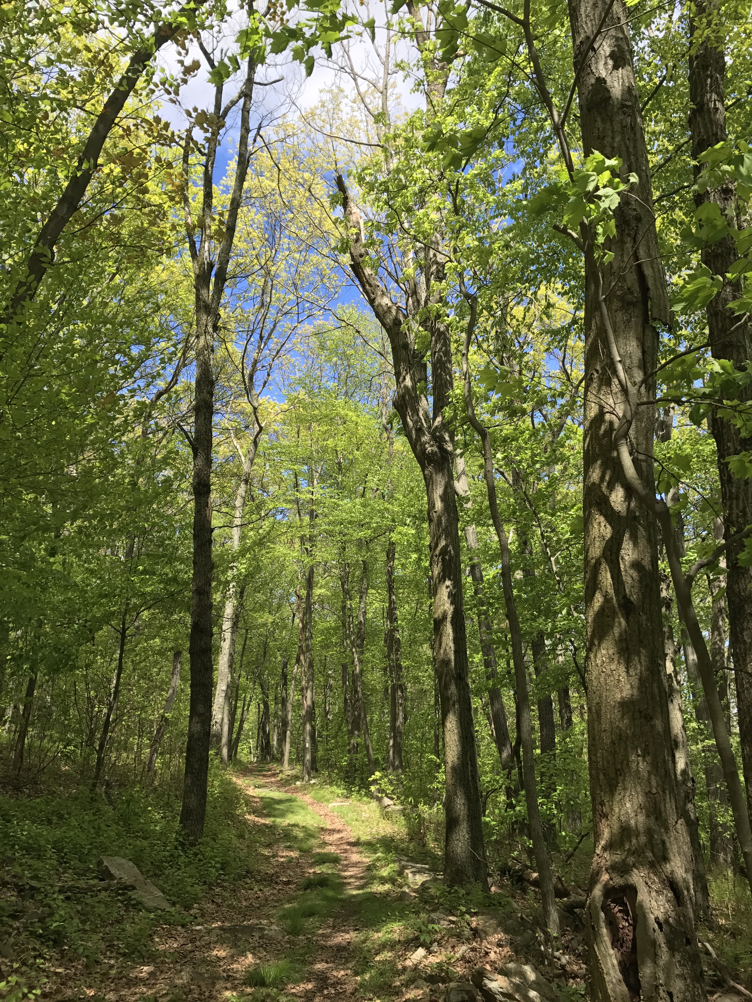 My legs were heavy as I walked up the road back to the trail. There was a very long hill with a partial view of the neighboring ridge in the sunlight off to my left. I thought for sure I’d been climbing for like a mile, but the map program told me I had gone a measly half mile. Slow going.