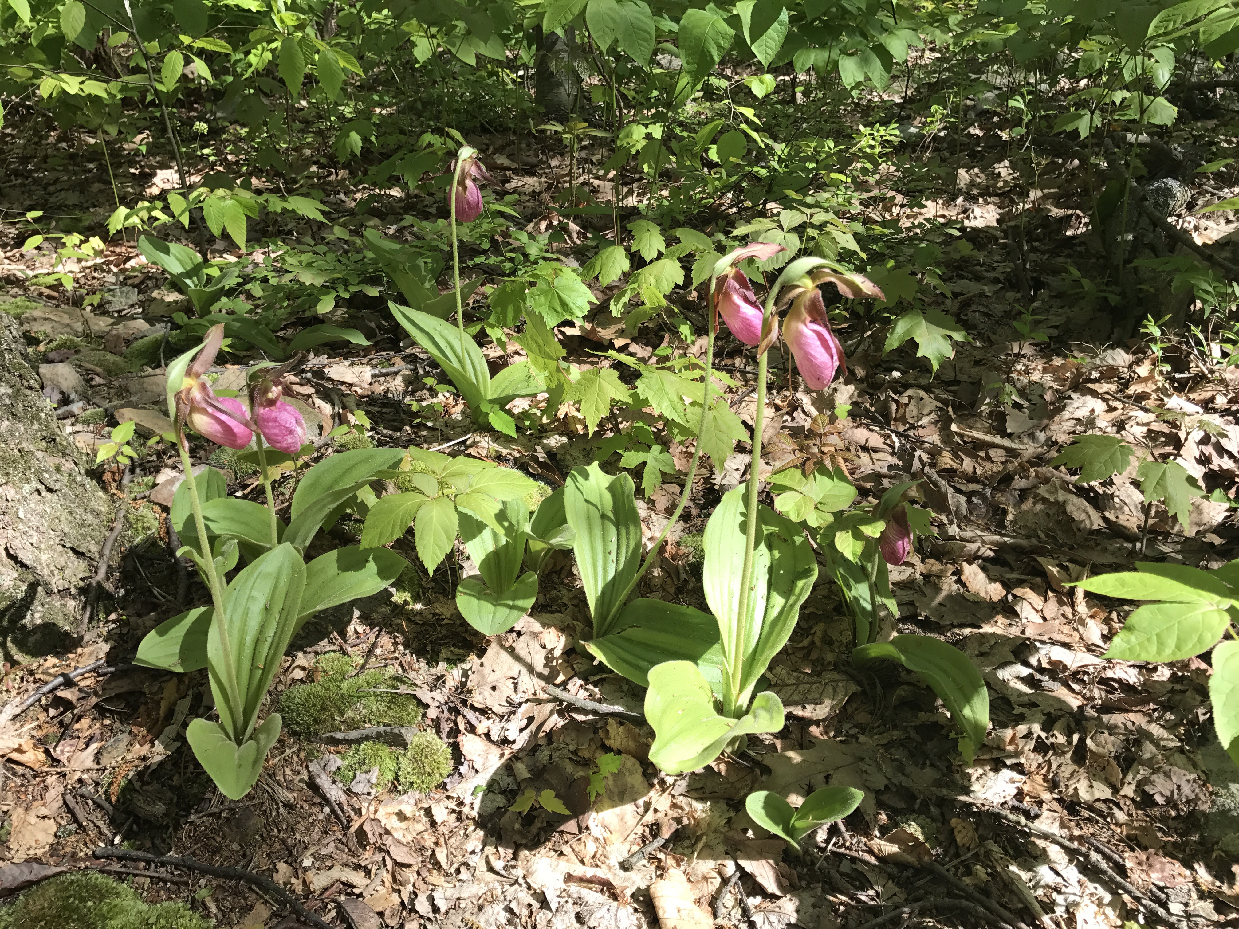 Thankfully the trail didn’t get much rockier than any other point in the day. My feet were sore at that point, but my shin held up really well today. I saw 56 lady slippers today. Unbelievable. There were clusters of up to 14 at a time. also saw a new little yellow flower.