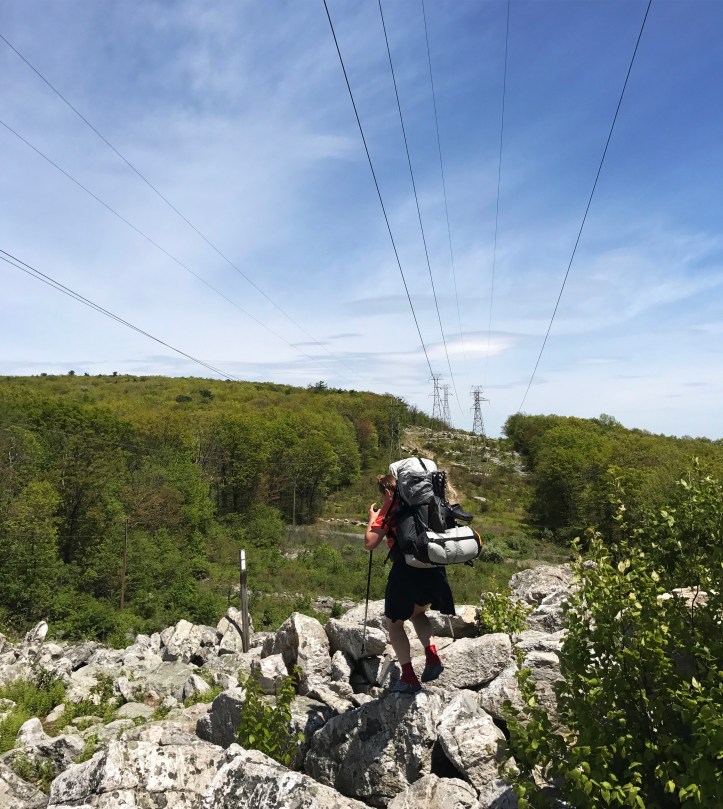 After I finished eating, which I did standing because I was too freaked out that sitting might hurt, we hung bear bags. I crawled into my tent to write and get off of my feet. We are supposed to tackle Lehigh gap tomorrow, which is notoriously difficult and has to be done with extra water weight. I’m going to try to reserve my freak out until I get evidence that says I’ve really hurt myself. I’m writing this to the sound of road noise, chrissy laughing because jimmy texted us from his tent, and halfway squeaking around on his sleeping pad. Fingers crossed that I will just be sore and not out of commission.
