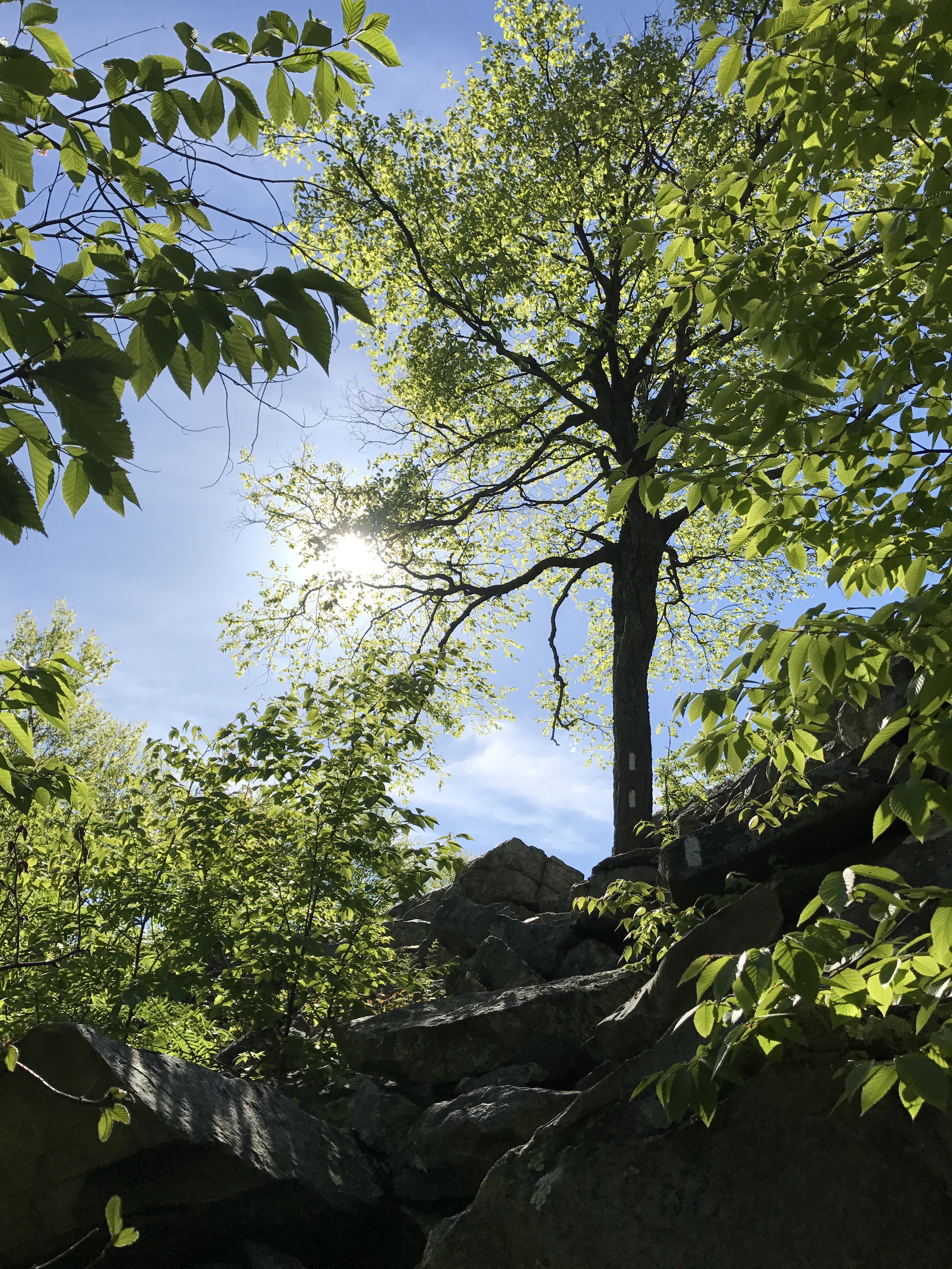 Not long after the rocks started, the trail led me up to what’s called knifes edge, which involved crossing a ridge made up of rocks sitting at crazy angles. There were very few flat surfaces to be found. I definitely had to scramble and use my hands. I made it through unscathed and was on my way down the last spine when I heard a guy yelling behind me. Something about “hell of a way to start” He sounded belligerent. Turns out his trail name is Mad Tom and he yells a lot. He and his partner are finishing their AT section hike with PA.