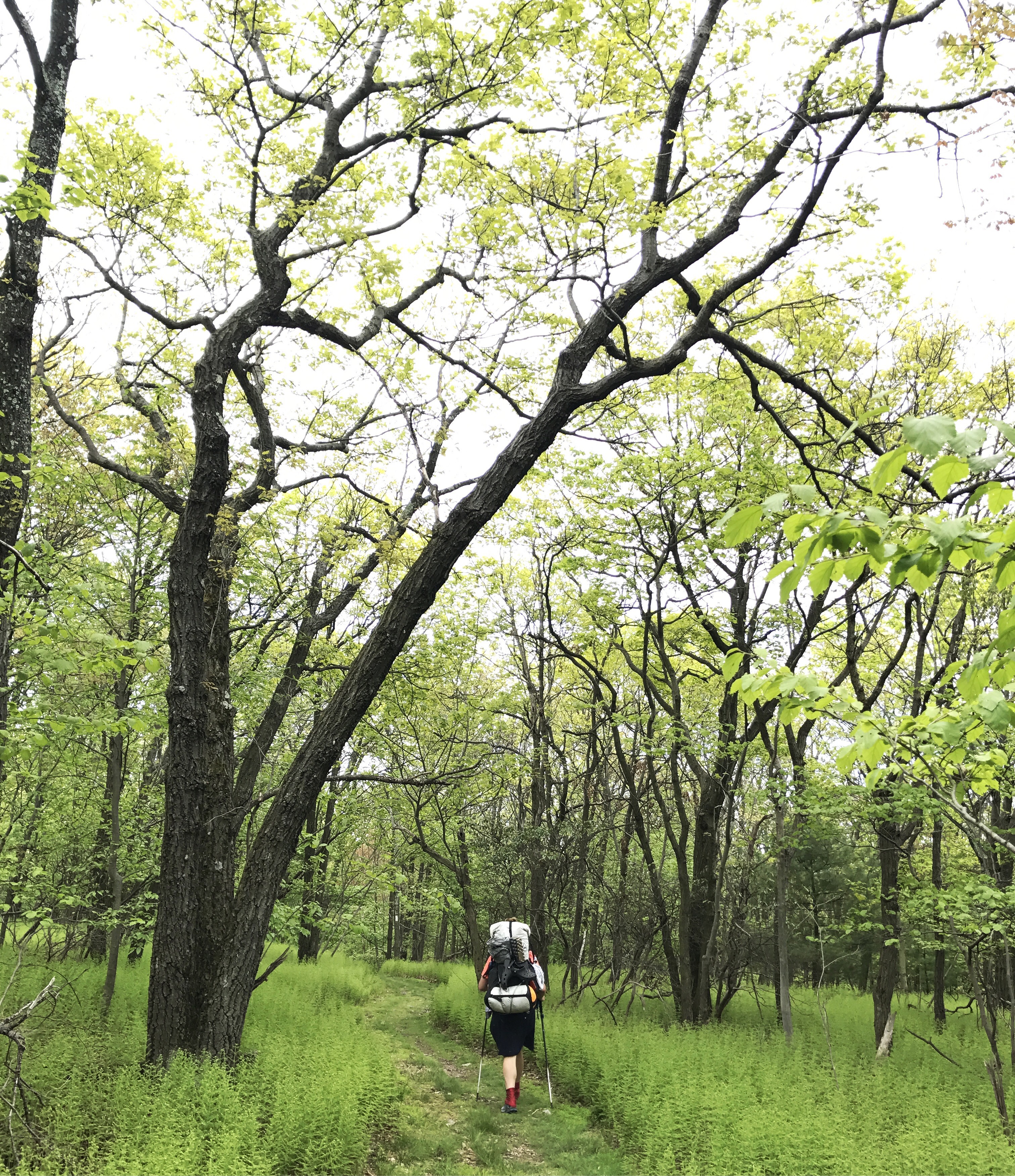 The afternoon was hot and dry with very little shade. I wore my ridiculous dollar general boonie hat and put on sunscreen like a responsible pasty person. I’ve had trouble paying attention to anything beyond four feet in front of me the last few days, especially in the afternoons. Somehow chrissy and I ended up walking together for another couple of hours today. We didn’t talk much. She was also tired and being harangued by gnats. I had taken a benadryl after lunch in the hopes that it might allay the weird puffiness in my index finger. It’s possible that had something to do with the extra wobbling for the last 2 miles. I had to really concentrate on what I was doing. I also ate another snack and drank more water. Sometimes I feel like my body is a baby, and I don’t know what it wants so I just keep trying stuff until something works. The last two miles into c’s of were dismal in terms of energy level and mood, but we the ferns helped a little bit: