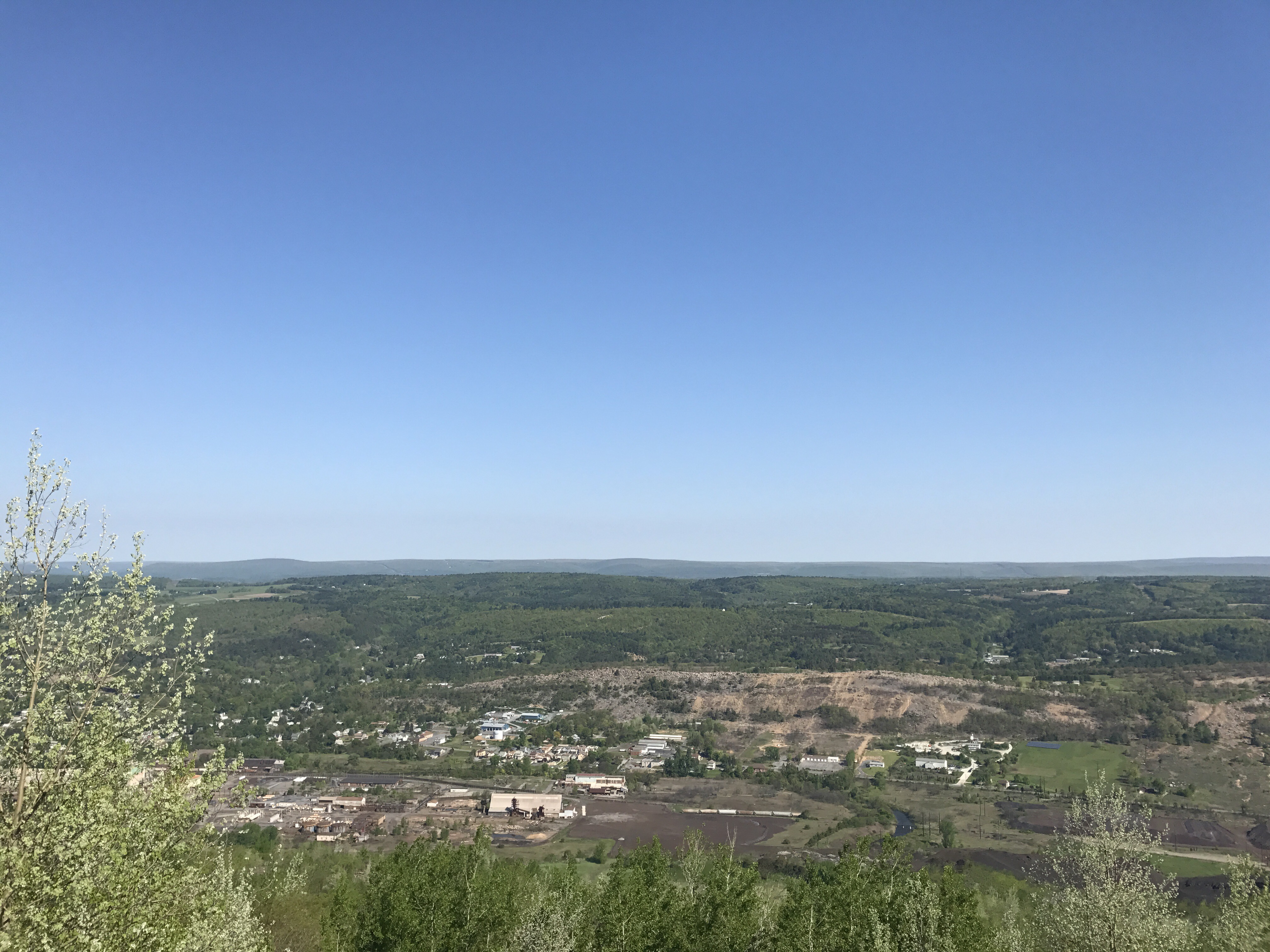 After the intense climb and the transition across the point (I don’t know what else to call it because it wasn’t the summit), the trail led us through a gradual rocky climb. As I went up the rocky ascent, I cried from the relief of not being in pain and the adrenaline of scaling the gap. The trail eventually transitioned to a bucolic walk along the side of the mountain with views overlooking dismal factories. When I got to the quasi meadow walk I let myself cry a bit and then I laid down in the middle of the trail to take a break. I also laid down on a giant slab of rock a little while later to catch a few more minutes off of my feet.