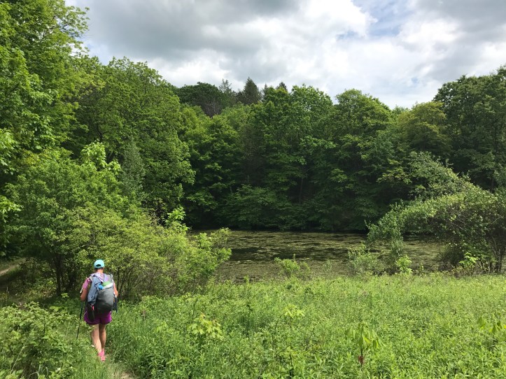 We went through a series of fields this afternoon, which was a welcome change from staring at my feet! There was a dearth of lunch spots today, so after not finding the alleged stream from AWOLs guide, we plopped down in the grass at the side of one of the fields. Buzzcut took off her boots (cursing the whole time) and I ate a very dull tuna wrap because I’m out of cheese and hot sauce. JD and treebeard happened upon us while we took our break. We ended up walking with them for about a mile until we hit a nice little stream.