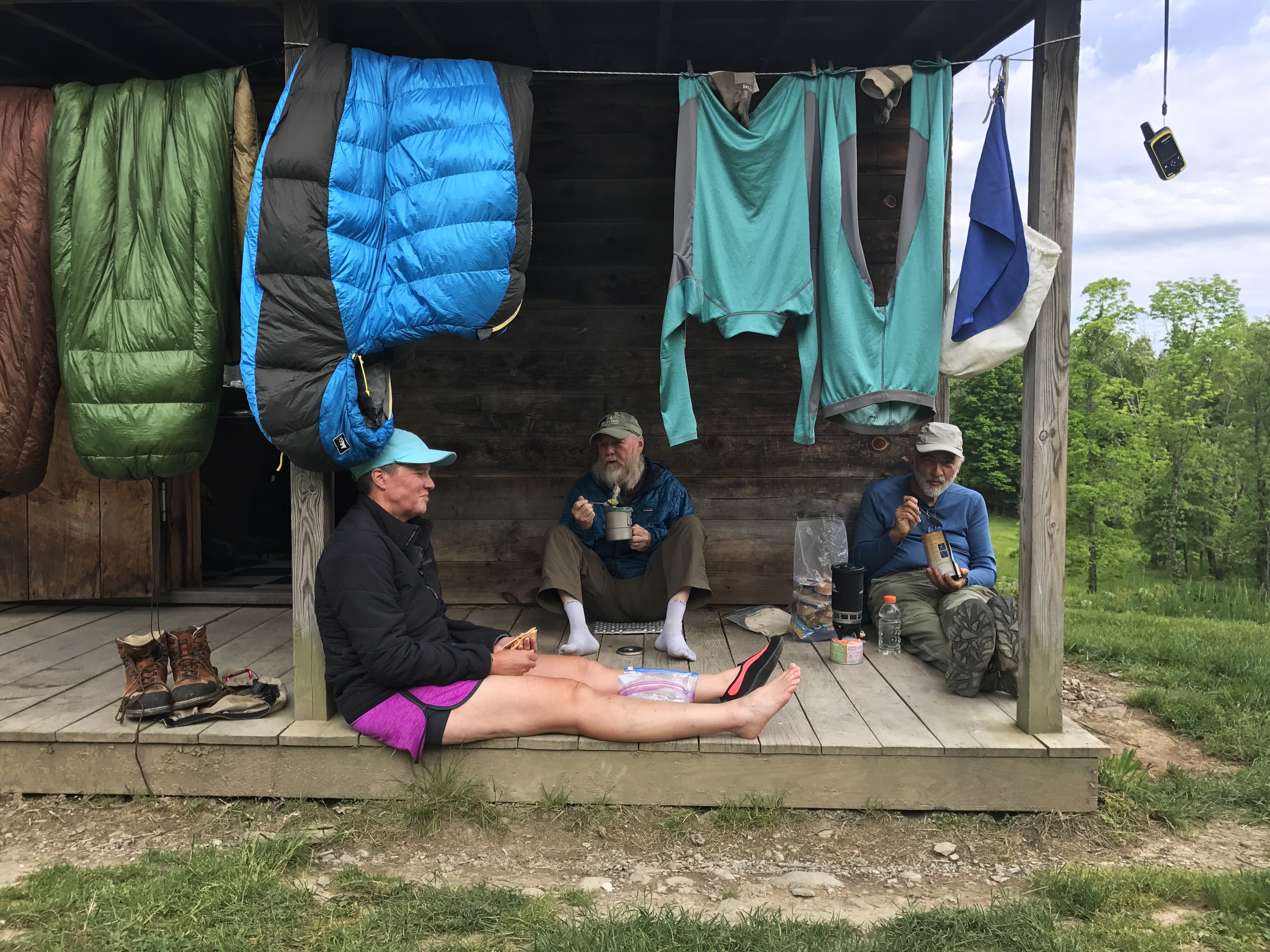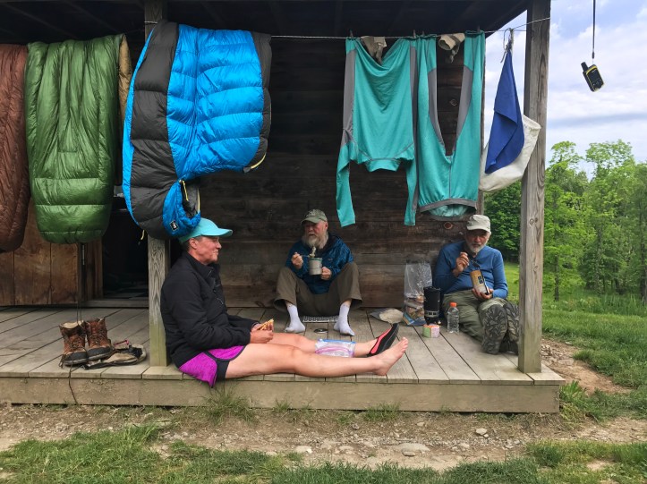 My stomach rang the dinner bell around 5, so I boiled water for a dehydrated meal. The others slowly did the same, and we ate together on the porch of the shelter.