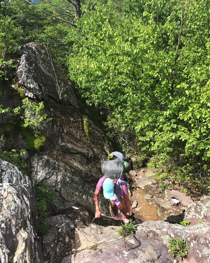 Two gentlemen from Alabama started dragging all of their stuff out of the shelter around 530a. Somehow they still managed to be slow to leave. Anyway, I gave up on sleeping and slowly went through my routine. Here’s an abbreviated version. First: privy time (thank you, reliable body for not making me dig cat holes at random times throughout the day). Second: breakfast of joy. Third (if it’s warm): change shorts in my sleeping bag. Four: shove everything under the sun into my bag (methodically). Five: brush teeth and put in contacts. Six: pack up tent if applicable. Seven: quick glance around to make sure I didn’t leave anything. Eight: walk out of camp and try to ignore all the things that hurt the first 15-20 minutes.