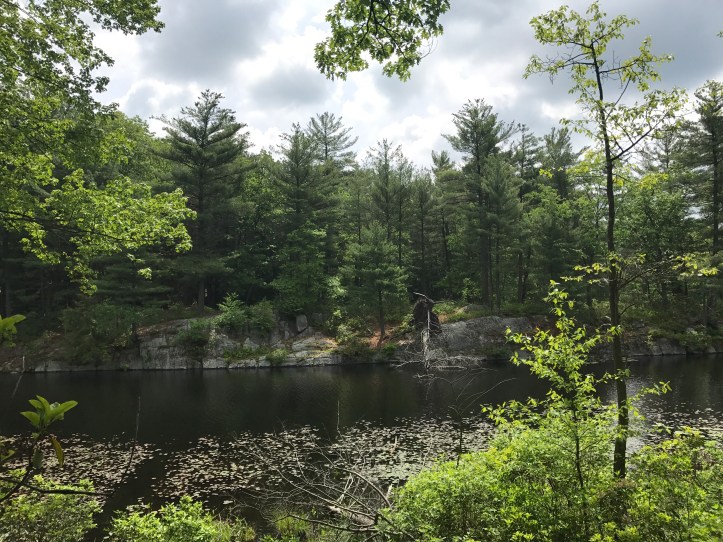 Sometime around 11, we crossed little dam pond (that’s really the name), and ran into chatty NOBO again (his name is Norm, after the cheers character). He was on the verge of loopy, sitting on a rock by the dam eating all of his food to lighten his bag. We stopped to filter water and ogle the water snake hanging out by the damn. The trail hugged the edge of the pond for an enjoyable stretch. This rocky edge reminded me a bit of Maine.