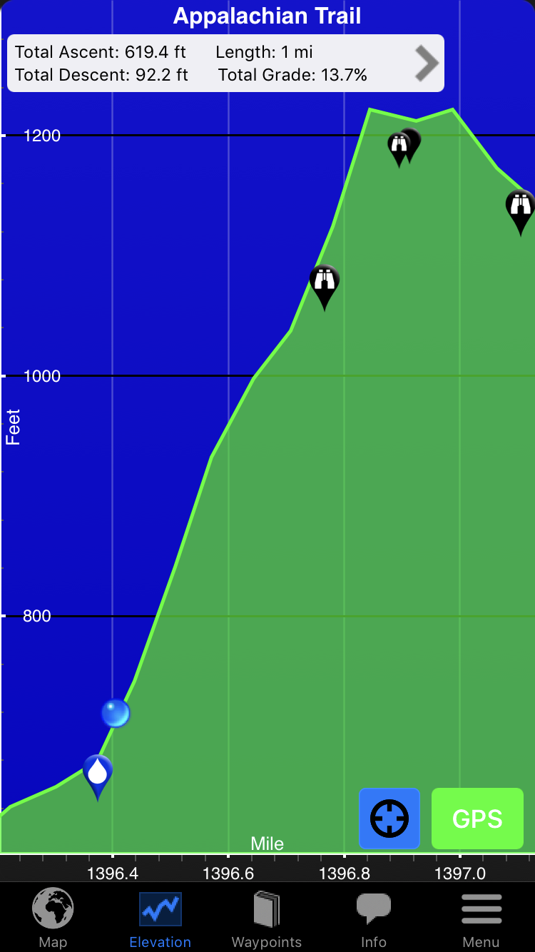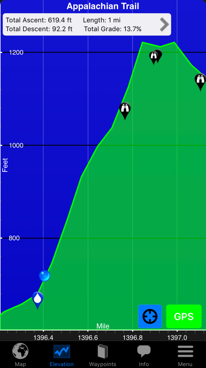 After is a goodbye to the cutest little family ever, we made the long, lung burning climb up what I thought was bear mountain, but actually turns out to be the mountain before bear mountain (need to look that up). As we started to climb, I looked at the elevation chart and laughed. Here’s a screenshot of what it looked like (I’m the little blue dot).