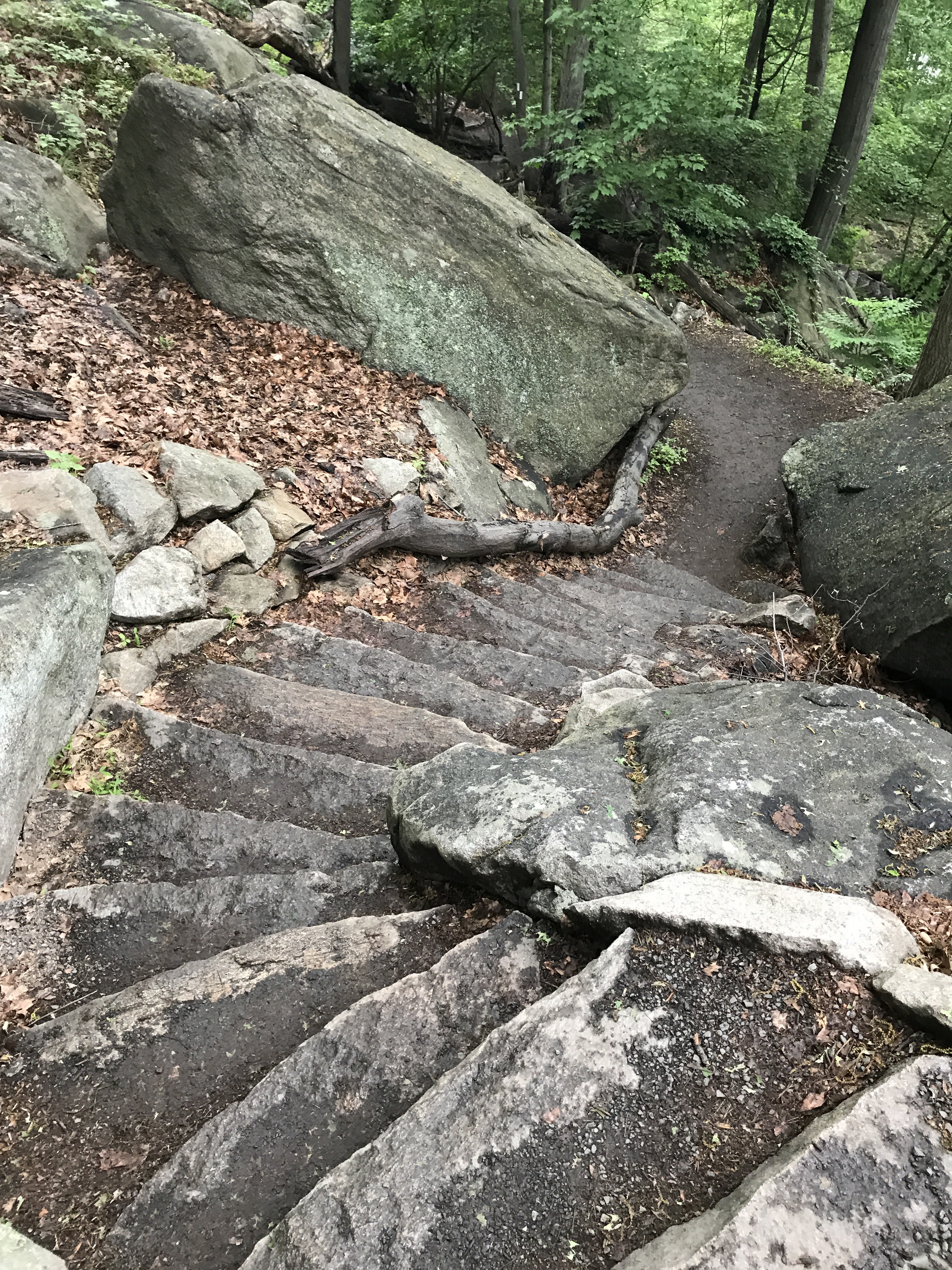Then came the climb up what was actually bear mountain, which involved a butt ton of stone steps. In some ways, stone steps are great because they cut down on the stabilizing required on uneven rocks and roots. However, they are incredibly hard on the balls of my feet and make my legs ache because there’s no give when you land.
