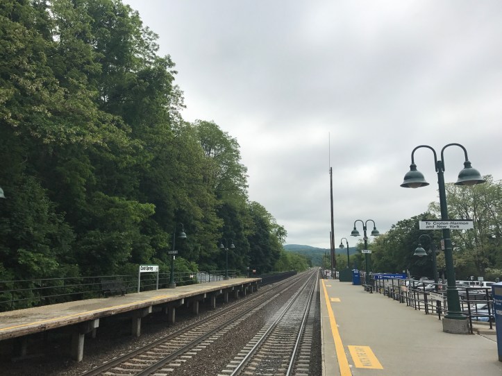 I made myself a tuna fish frito wrap and ate my lunch on the outdoor train platform. People started congregating about 10 minutes before the 1216 train. A woman sat at the far end of the bench eating fresh blueberries while I chomped my way through a bag of Doritos from the bear mountain vending machine. It didn’t rain as much as I expected this morning, so I’m in reasonable traveling condition save the mud swipes on the insides of my shins.