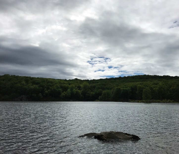 I love walking across railroad tracks because I feel like I’m trespassing, and they always make me think of possibility even though most people don’t travel by rail these days. I also saw a lone lady slipper, which I wasn’t expecting. After the stream, the trail crossed a small paved road and climbed up and around nuclear lake.