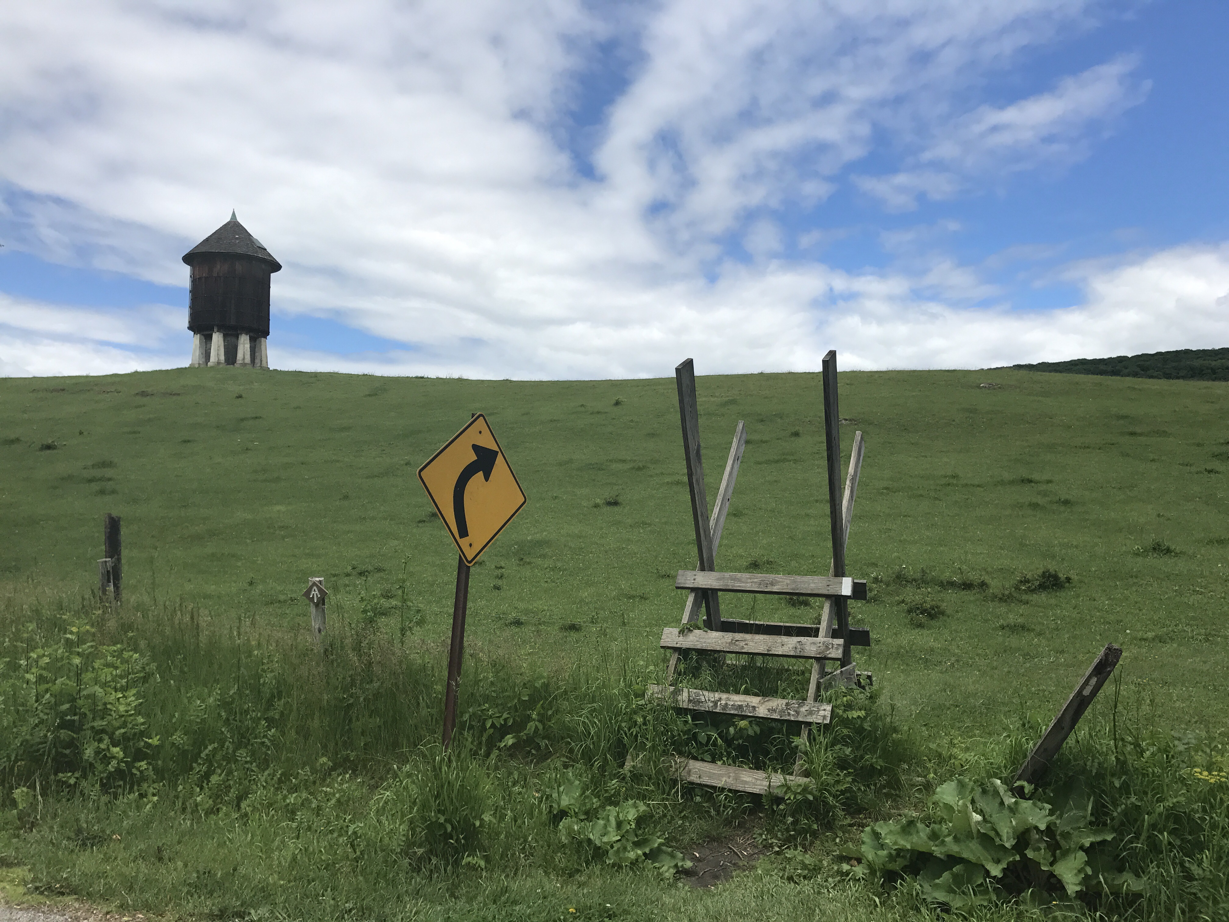 After crossing another turnstile, I left the baying cows behind and walked through a field surrounded by tall grass. I saw a new bird that I haven’t had a chance to look up yet. It’s black and white with either a yellow cap or a white one; the lighting made it hard to tell. Because of my bird watching and general lollygagging, JD caught up with me as the trail headed back into the woods. I wasn’t in the mood for chit chat, so I gave monosyllabic answers for a bit, but I felt rude and tried to engage more with little success. I eventually let him go ahead of me while I got water at a less than ideal stream. Nothing like drinking water the color of Pinot Grigio. It actually tasted better than the water I got from the pipe at last night’s shelter.