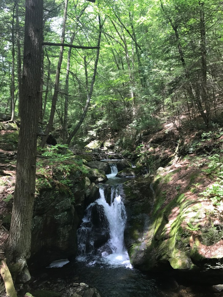 I stopped to filter water at sawmill brook, which is the source for the sages ravine site. The trail then follows the brook into Massachusetts. Downstream the brook transitions from quaint stream to rushing waterfalls and large boulders.