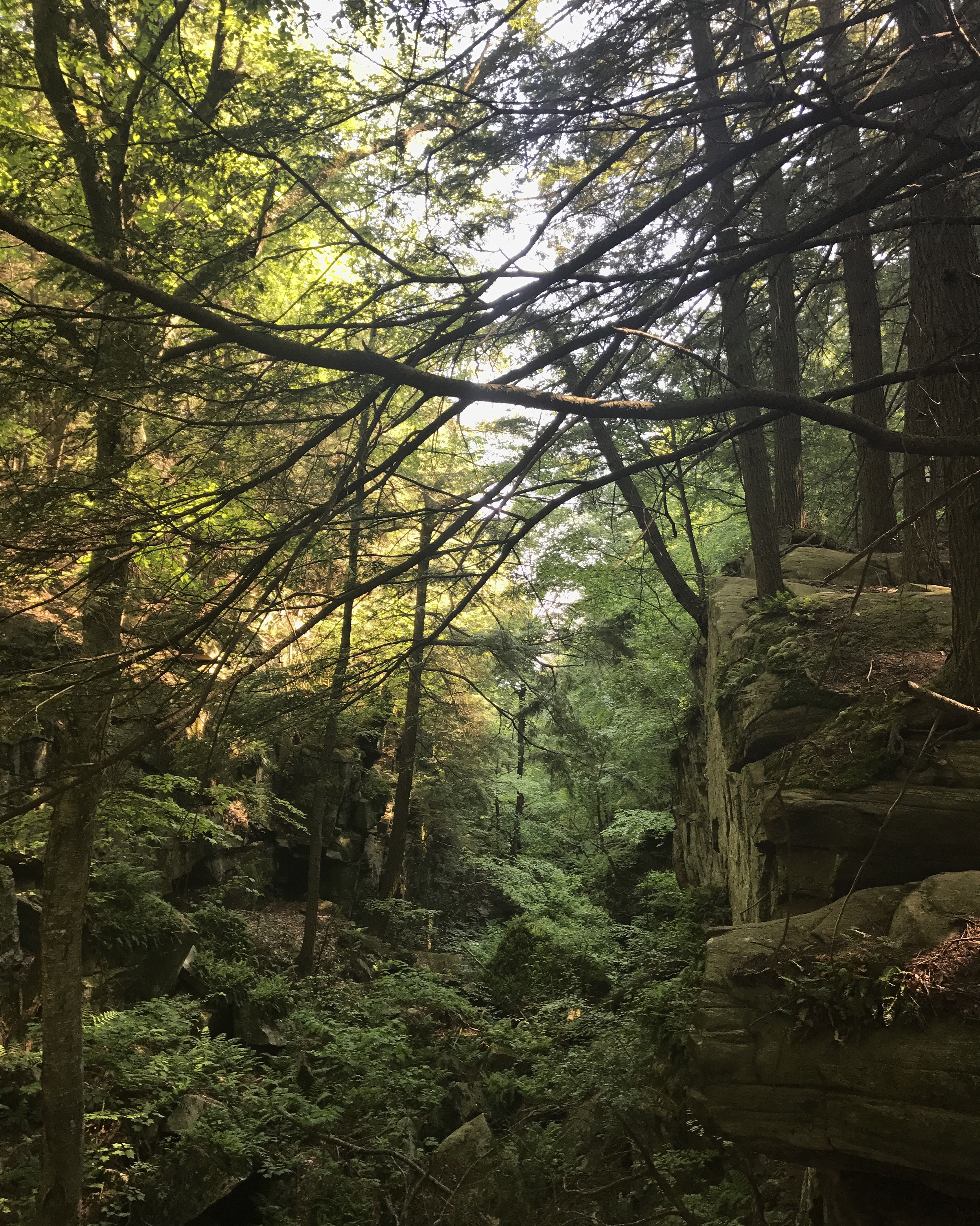 When I got to the shelter turn off, I barely hesitated before walking past it, thus signing on for a 19 mile day (after calculating the mileage for this lost I realized it was actually 19.6. Must use decimal points. Must stop eyeballing mileage). This was a terrible choice. The terrain was forgiving enough until the last half mile (of course), but my feet were already battered and showing signs of nerve pain. Nerve pain is my threshold for when things are going terribly wrong. Muscle pain is expected. Nerve pain equals impending doom. My Friday deadline loomed large in my head, and I let it dictate something that should really be answered by my body. Immediately following the Leonard shelter, I passed what my guidebook describes as an ice gulch (top picture). It consisted of a wide fern/tree filled gorge between giant boulders and was just about the last hung I paid attention to until I considered stealth camping near this view.