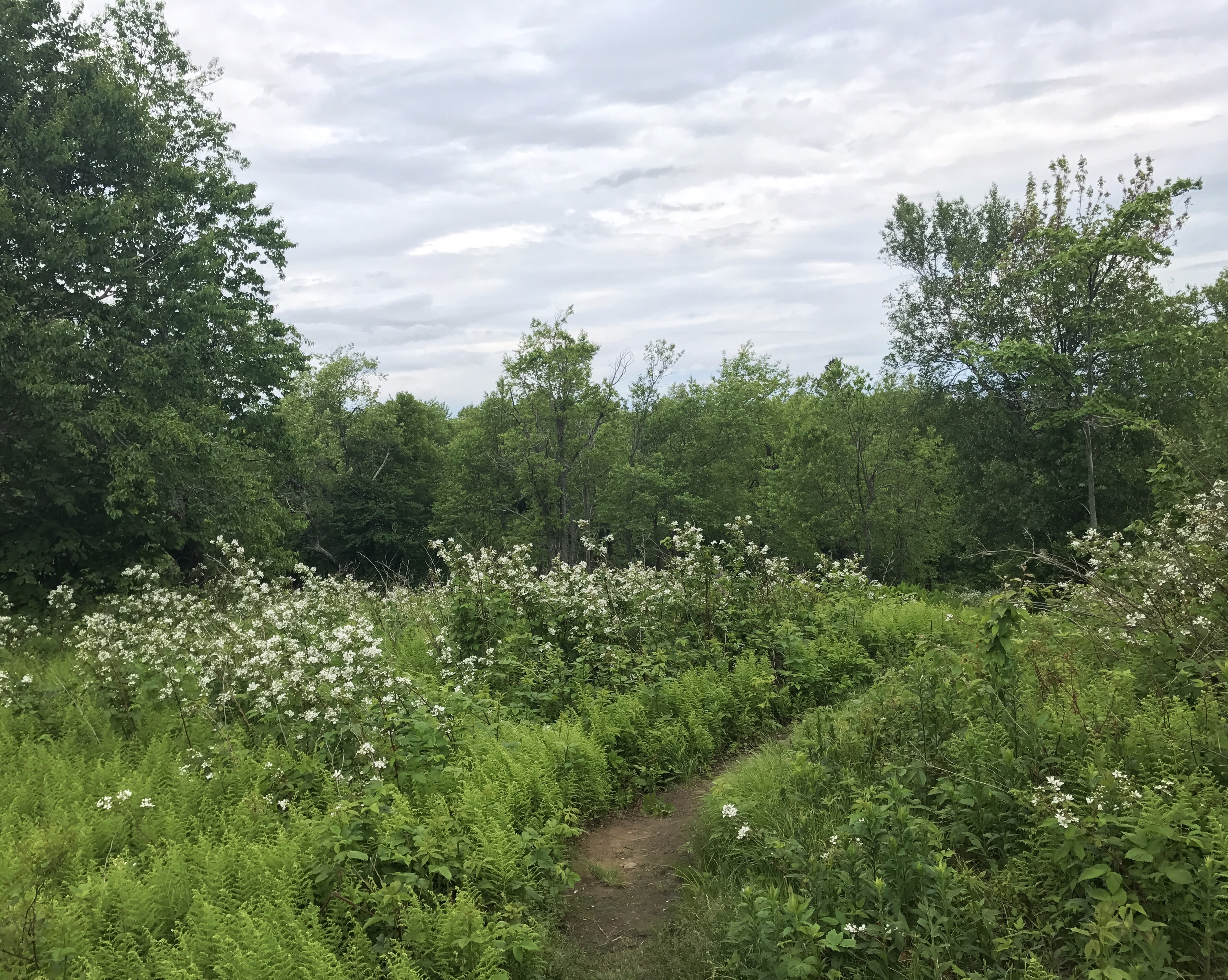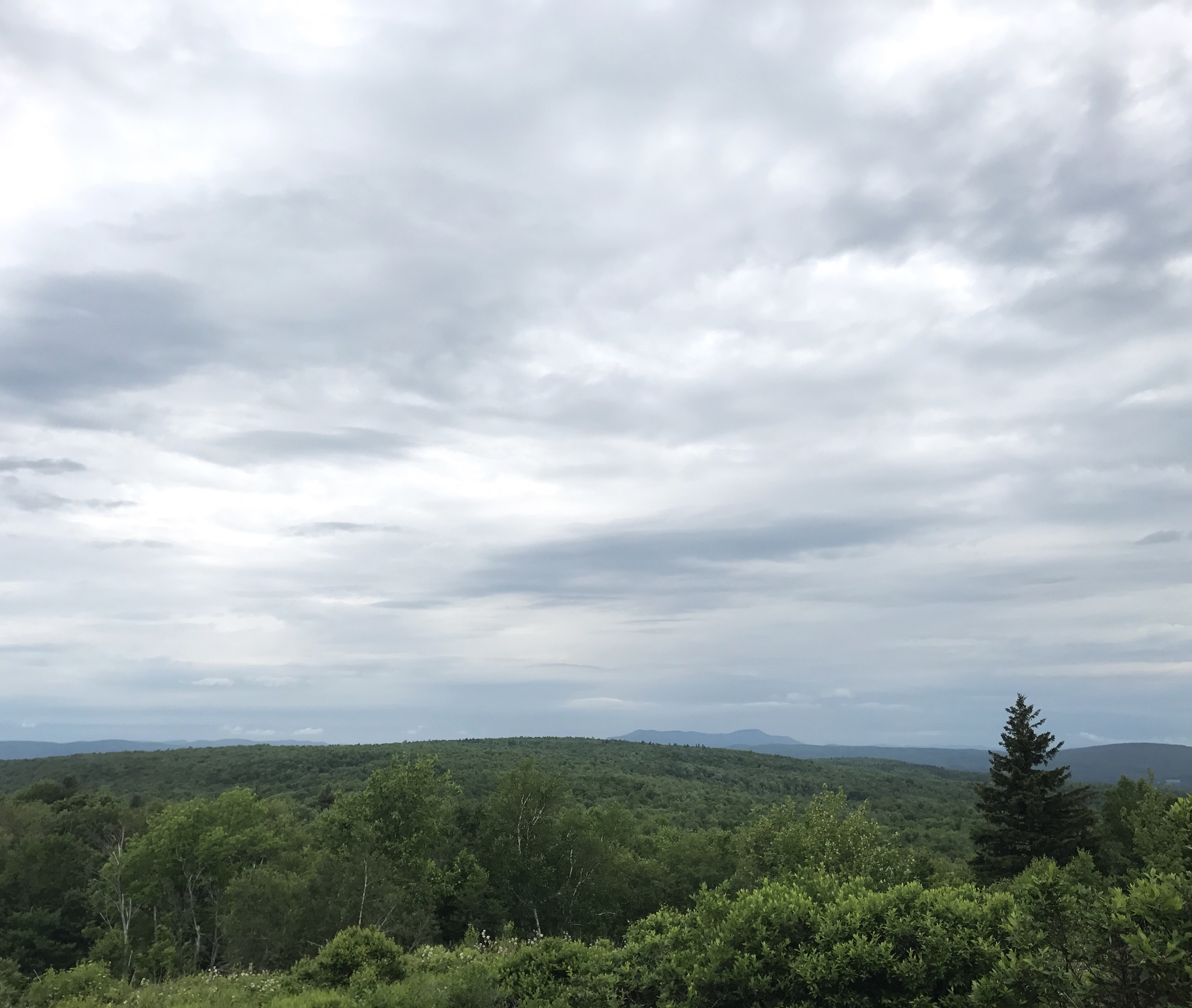 The trail eventually made a small uptick towards warner hill, which afforded this view of Mt Greylock in the distance. A thick layer of ferns covered the hillsides with unruly raspberry bushes scattered about.
