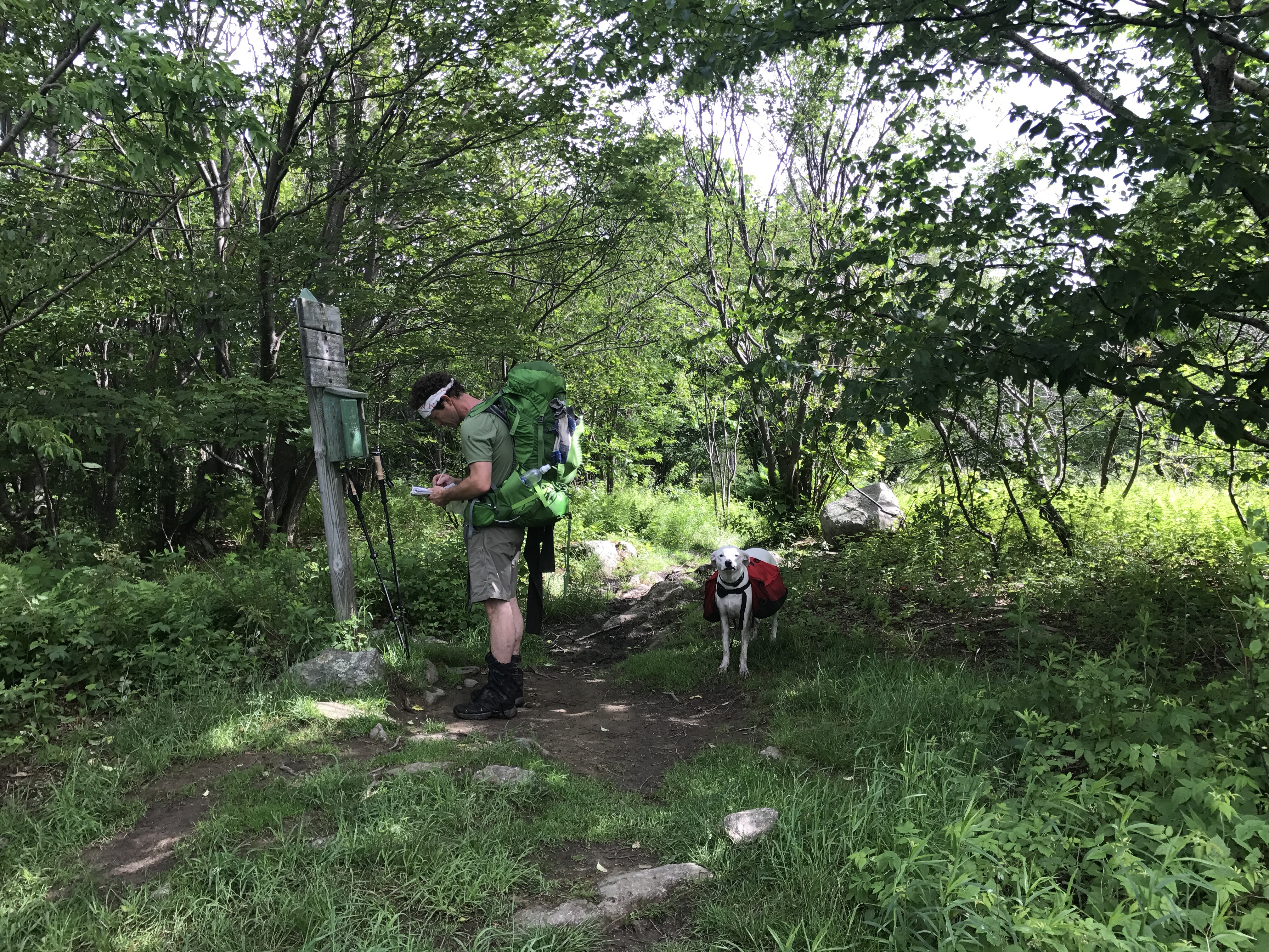 I ran into the older gentleman named cosmo that I met yesterday. He let me use some extra toxic bugspray which I felt grateful for because the gnats were abominable. Shortly after leaving him sitting on a rock, I walked and talked with an old friend with whom I’m trying to coordinate hiking together. Sadly it doesn’t seem like it will work out, but it was nice to catch up. As I talked, Ozzie and his owner, Free, caught up to me.