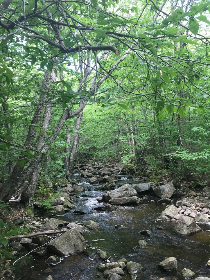 The brook itself was beautiful, and I thought about stopping to rest my feet but it felt too close to the poop scene, so I kept going. The trail did a lot of gradual climbing throughout the afternoon that I didn’t really notice until I considered how I would write about where I was. Hills remain my comfort zone and they actually hurt my feet the least. As I went up one section of the many hills, I heard a loud crash and saw a flash of something dart across the trail. My mind had been on bears, but the clatter sounded more like a deer. It left my legs wobbly and didn’t do much to settle my nerves. Not long afterwards, there was a quick rustle to my left and a little black and white bird popped out of the underbrush. It had a black body with white underparts and a flash of white at the end of its wings. It seemed like some kind of warbler based on the size, but I’ll have to wait for a better signal to look it up.