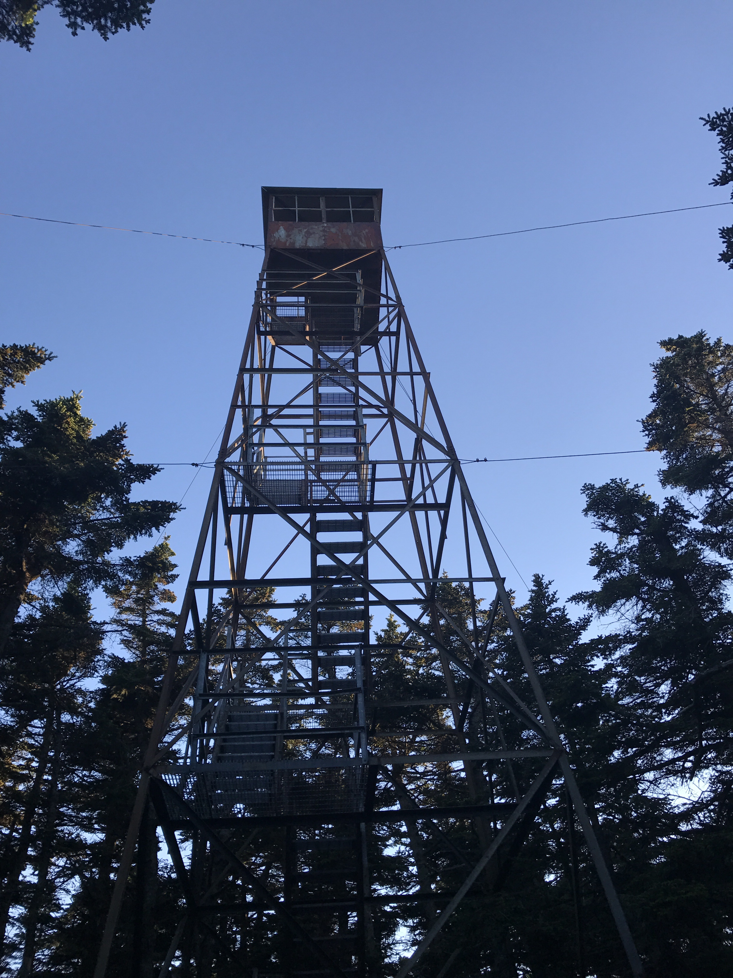 The wind howled increasingly louder as I walked up the fire tower steps. The view was incredible. Mountains for miles in all directions. I took a few pictures then sat below the wall of the tower to block the wind and wait for sunset. Two younger guys out for a month of hiking came up to see the sunset. They smoked a little pot and then said silly things about how the trees all looked alike. We were also joined by two NOBOs who hiked 40 miles in the last two days. Here are a few more pictures from the tower (including the top picture for today).