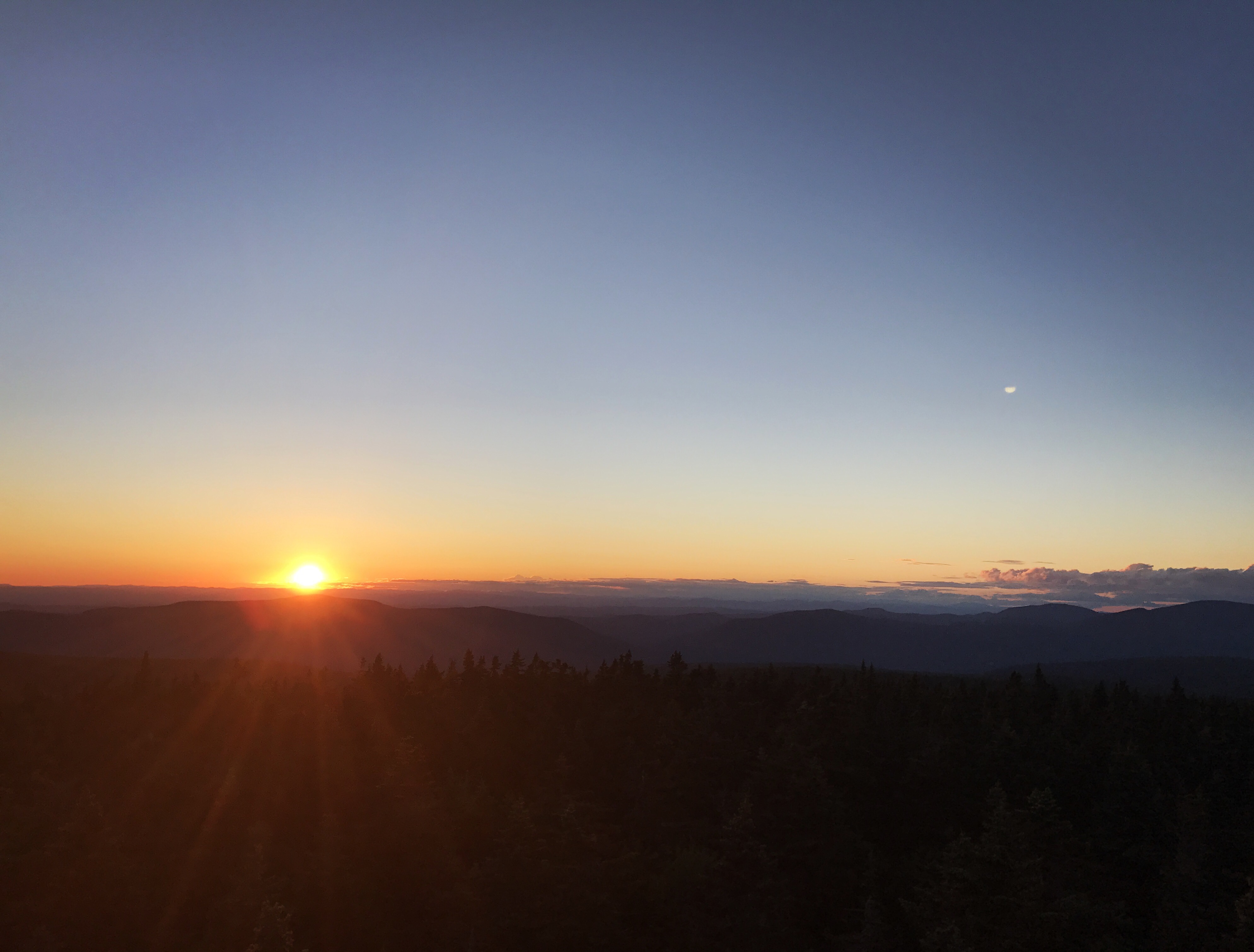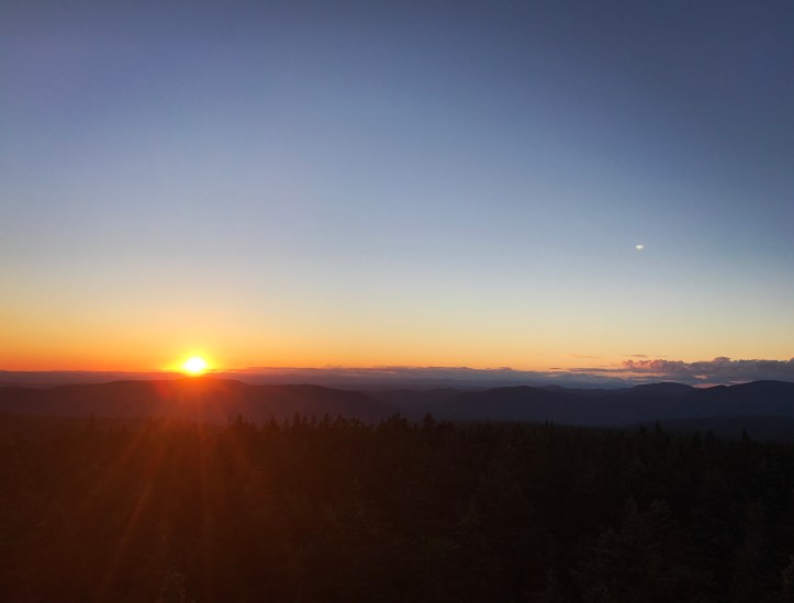 Ozzie and free passed me around 5. A NOBO also passed me and walked around a fallen tree as if there wasn’t a thick layer of saplings slapping against his bare legs. It’s like they’ve lost all feeling in their bodies. I plodded on, forcing myself to wait 20 minutes in between mileage checks. The trail finally took a steep tilt towards the shelter. The last .3 miles felt like at least a mile, but I finally made it to my pausing point. You see, my destination is the fire tower .3 miles past the shelter where you can get 360 degree views for sunrise and sunset.