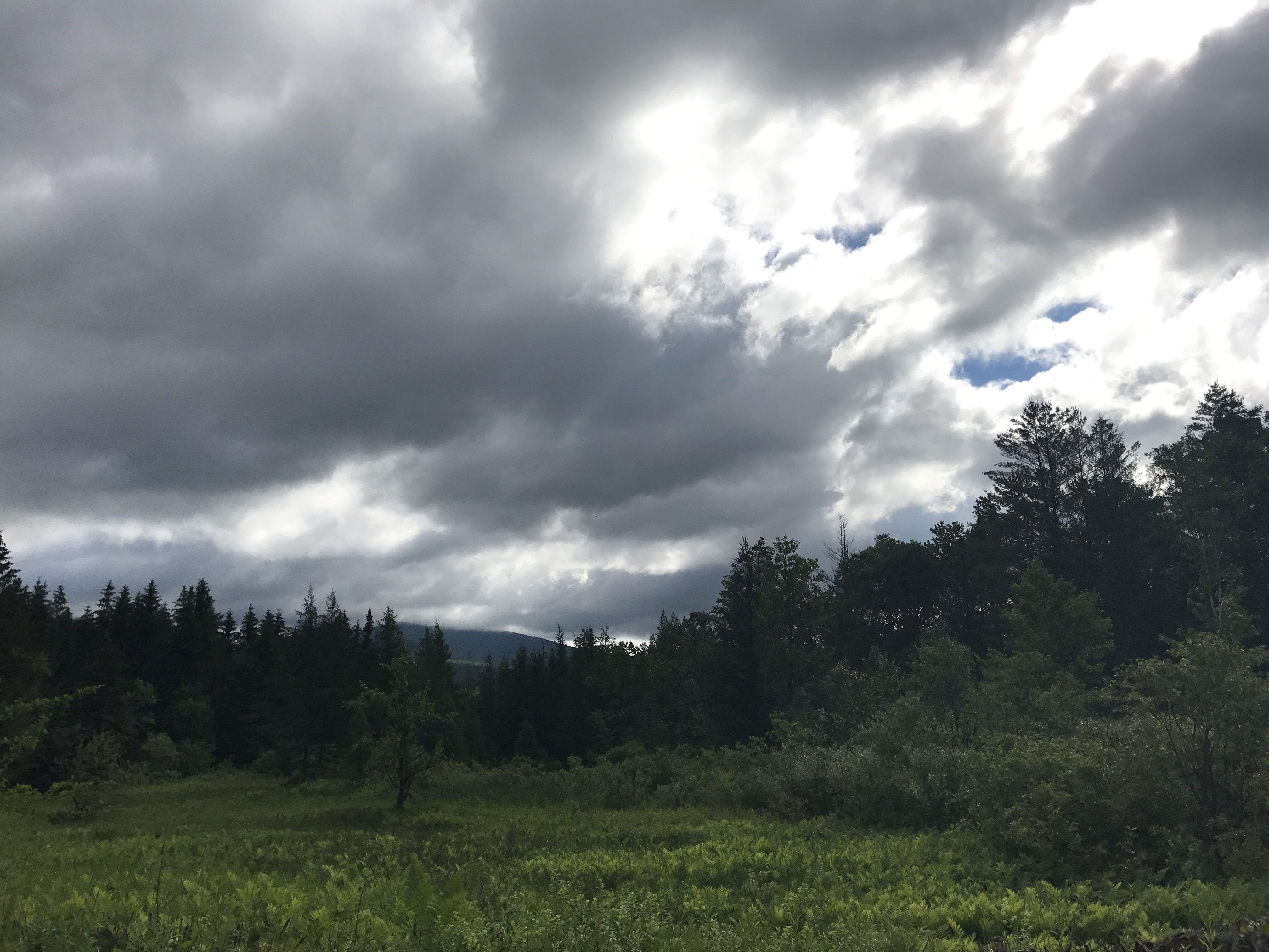 I packed up my tent and was ready to go a little after 7. The climb out of Clarendon shelter was short, but brutal. Over my loud breathing, I could hear the call of a bird that sounded like a swing squeaking to and fro. The hill ended with the sun in my face and was followed by a small drop into a fern covered forest floor. I could hear the occasional drip of water leftover from last night’s rainstorm.