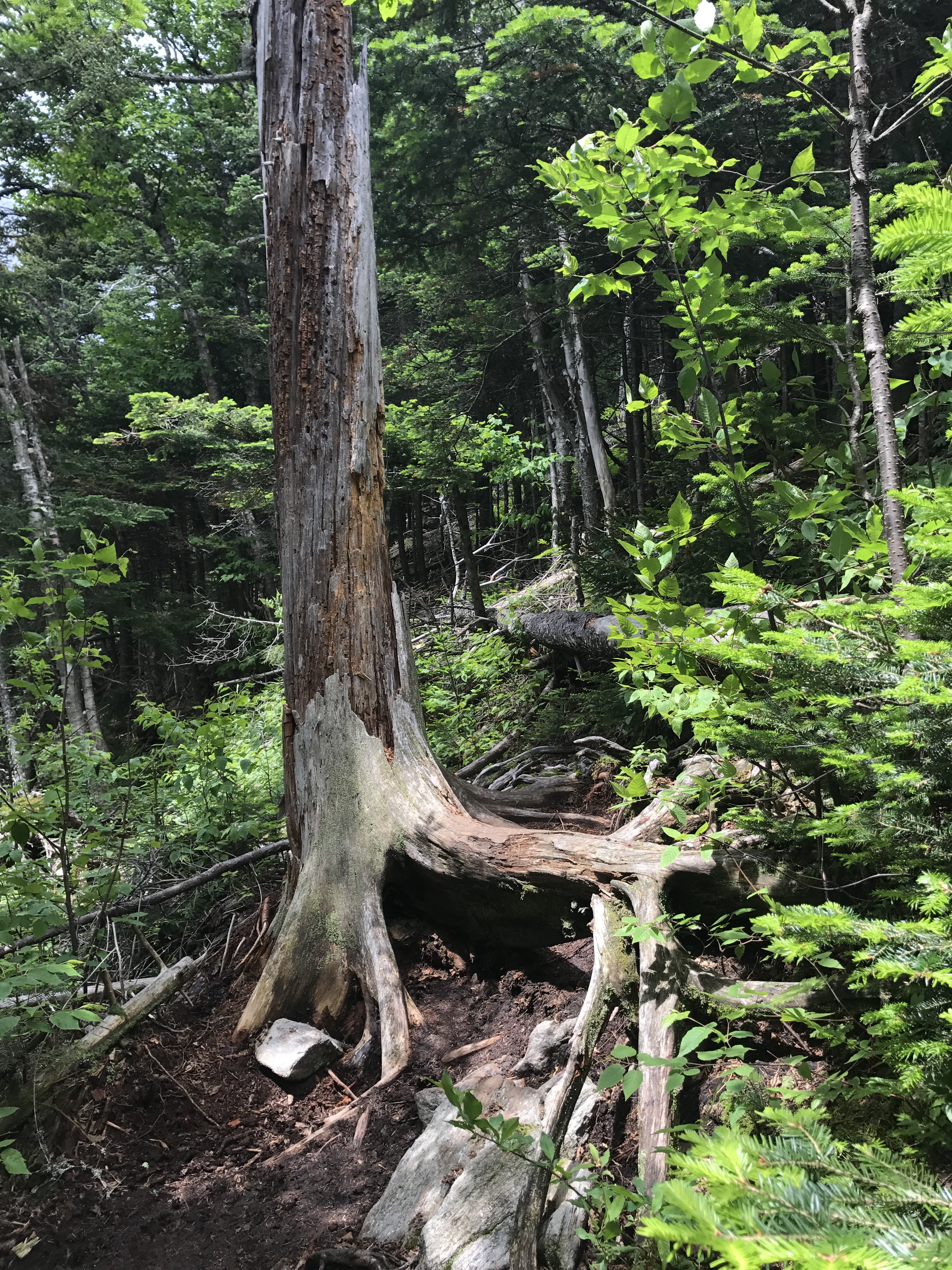 The climb continued to steepen and went through a section where many trees seemed to be hanging onto the hillside by their roots (southbound view in that pic). I came to this spot in the trail and cursed the guy from VT who told me it wouldn’t be steep. Note to self: don’t ask people from VT if something in VT is steep.