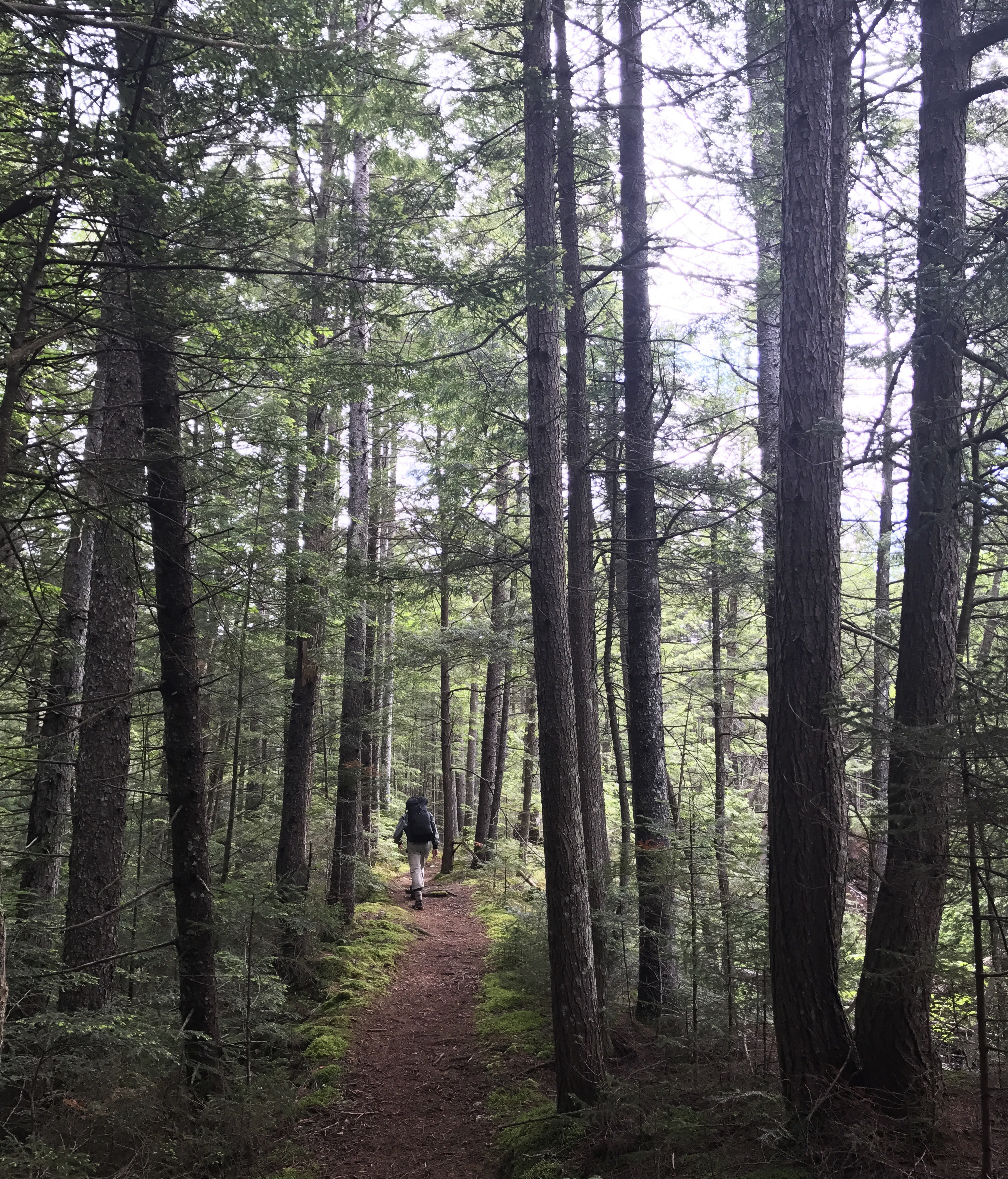 About twenty minutes later, I took a break on a log to eat a snack and rest my feet. First, I stepped behind a tree not even remotely big enough to block me and stooped down to pee. I heard a noise off to my left. I hoped it was just a chipmunk, but sure enough, a hiker approached. I thought he might miss me, but my bag was resting against the log by the trail. He looked up and spotted me. I said “hey” because what else do you do in that moment? He nodded and kept on walking. Nothing to do but laugh.