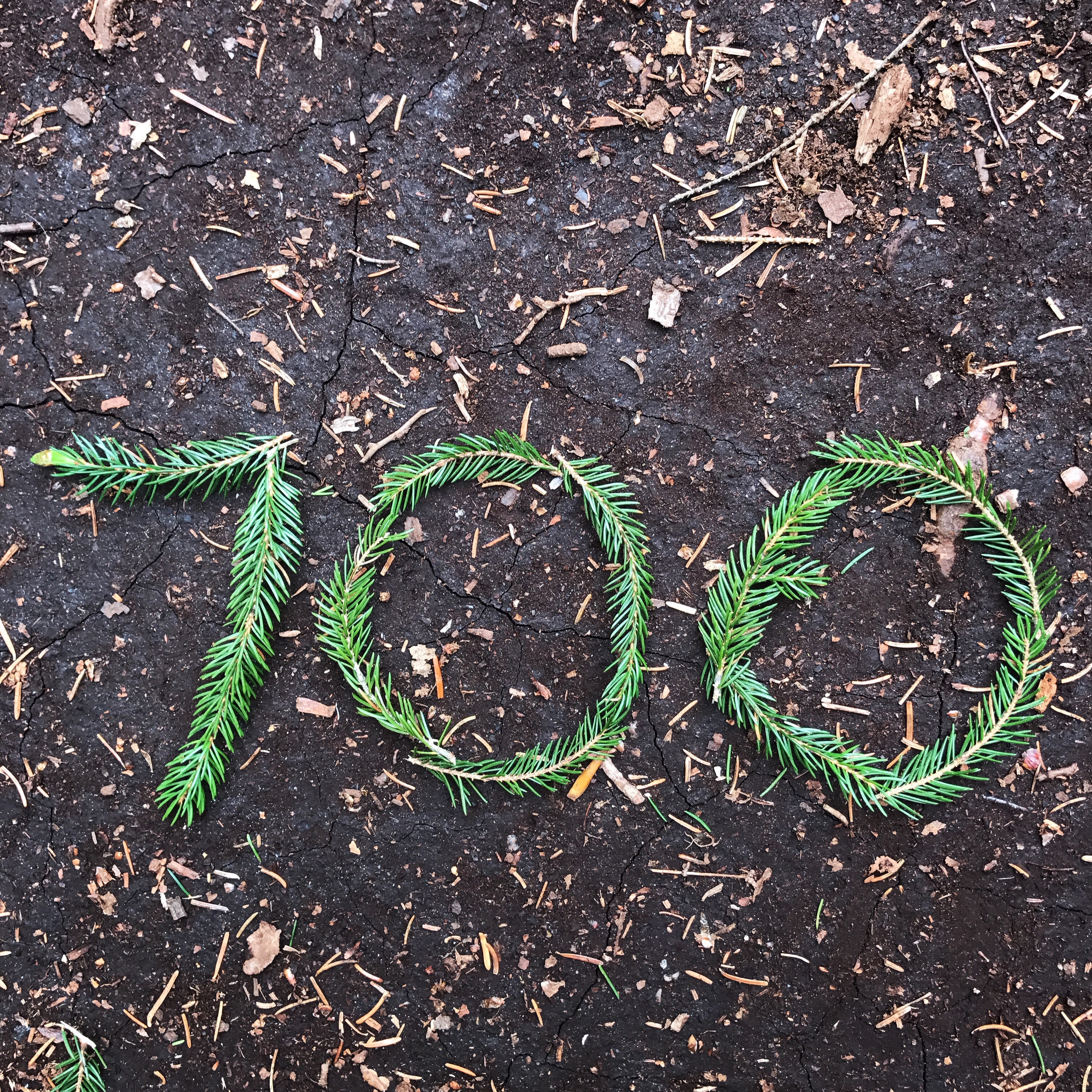At one point today I looked down to see a collection of sticks in the trail that seemed odd. When I looked closer, I realized they spelled out 1700, which made me smile. After a short climb down from this lookout (the bright green strips are the ski slopes of killington):