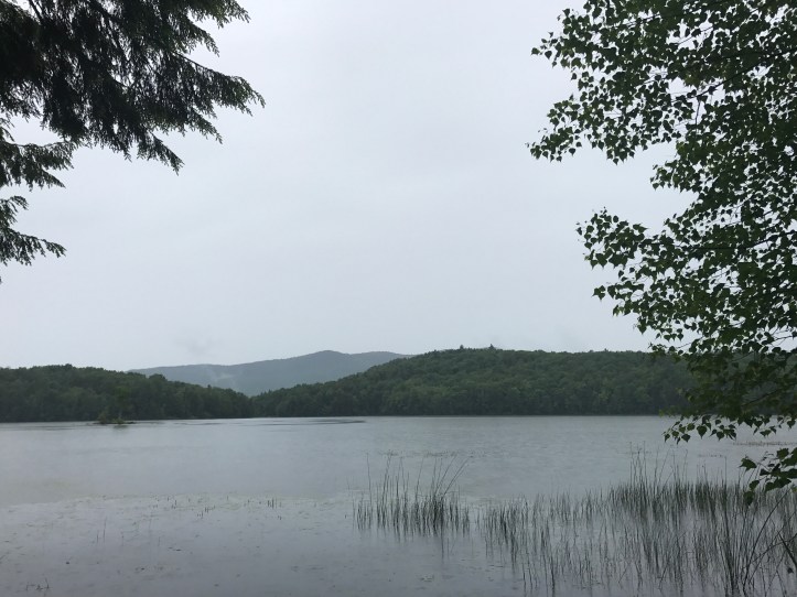 Once I found my way (having skipped about 50 yards of trail that I will not go back to do), I walked .8 of a mile through the rain to the mountain meadows lodge, which sits at the edge of Kent pond. When I arrived, Alex, the innkeeper on duty, gave me my options. Tenting for $10. A “hut” which was actually an old toolshed for $10 or a room for $59. I had been intrigued by the idea of a hut, but I had no desire to sleep in a stuffy wooden shed that seemed ripe for spiders. I told Alex I needed to sit and decide. As I spaced out, I heard alex tell another hiker (cosmo, who made a cameo several days ago when he let me borrow super toxic bug spray), that another guy named halfway was heading in. Halfway! So I told Alex that I wanted to wait for halfway to see if he wanted to split a room. I sat on a couch in their giant, drafty common room and started writing this post.