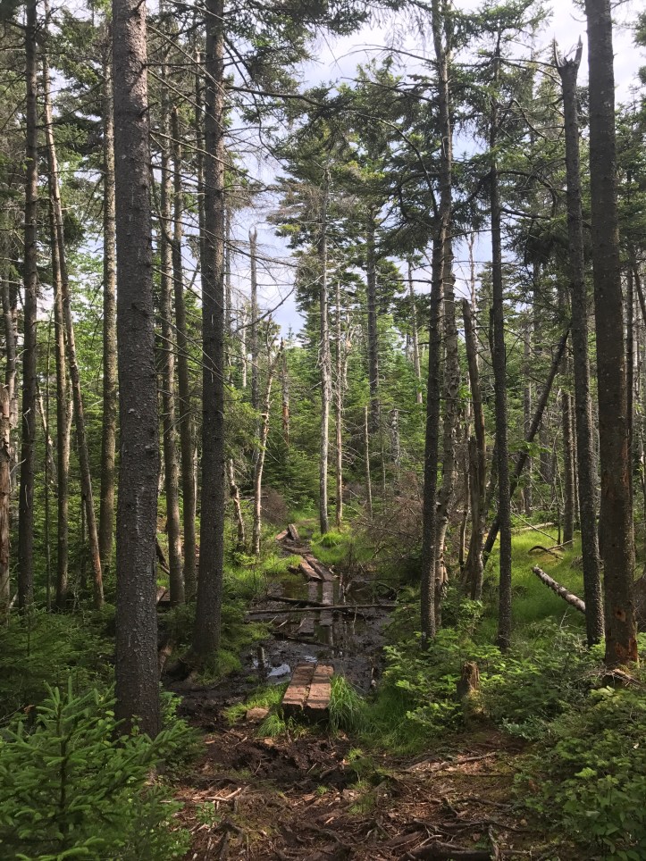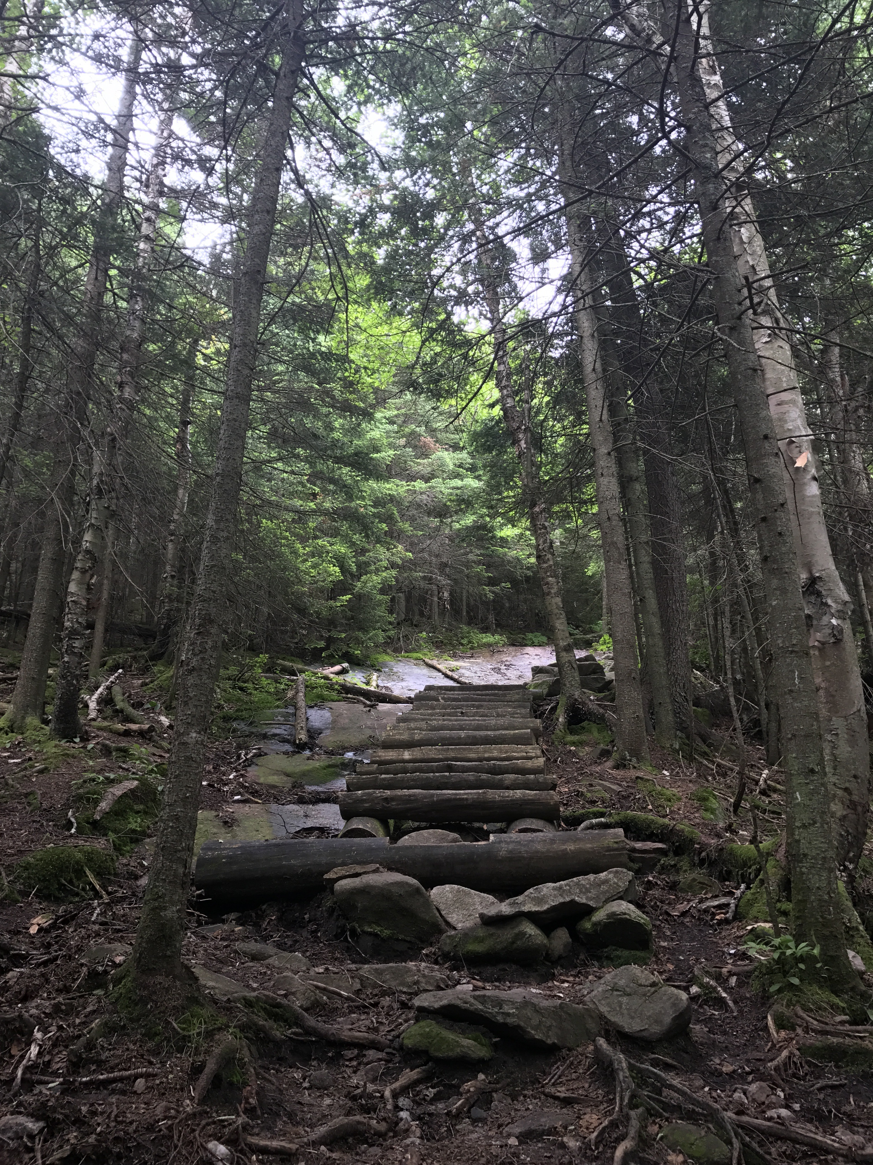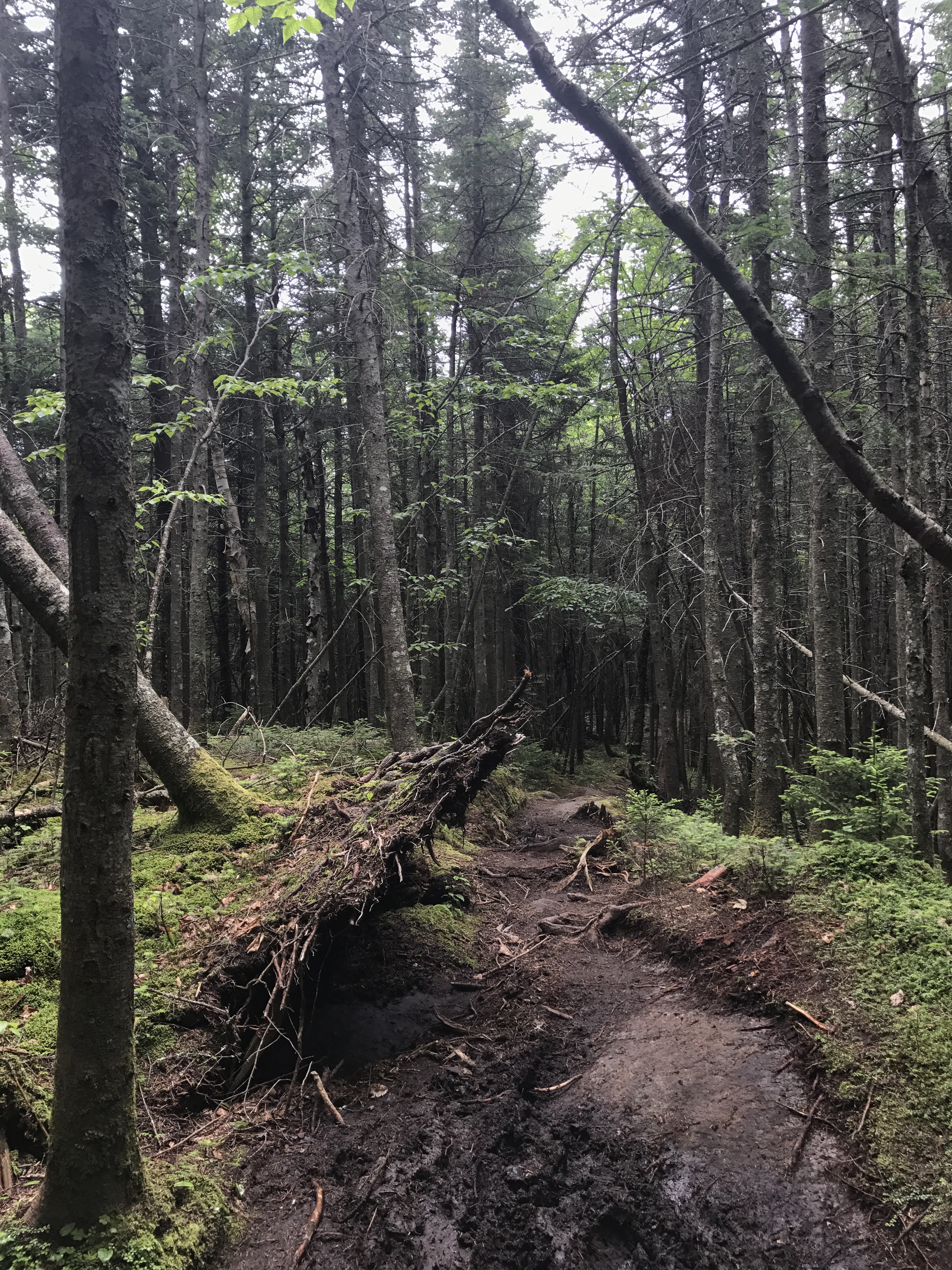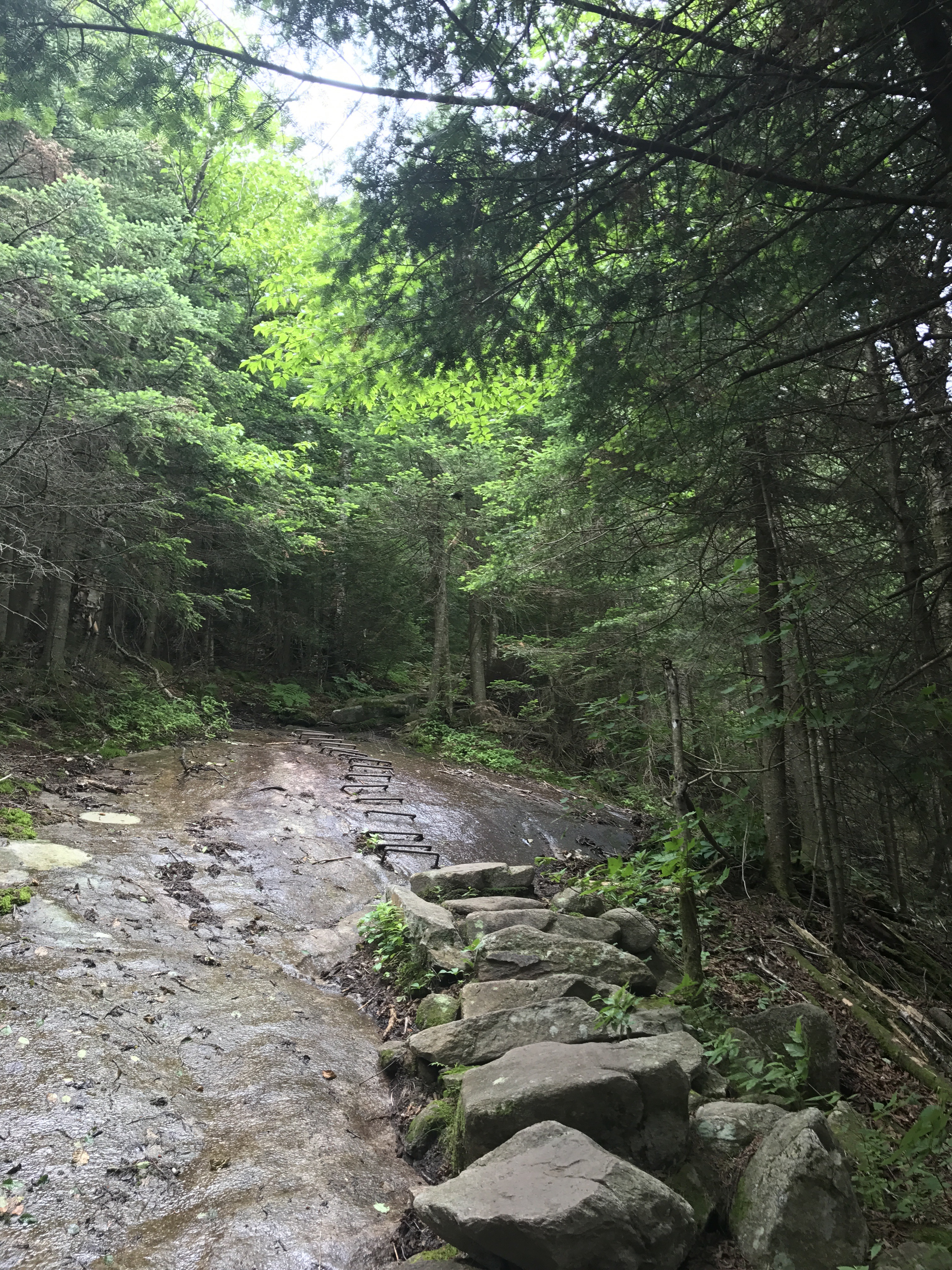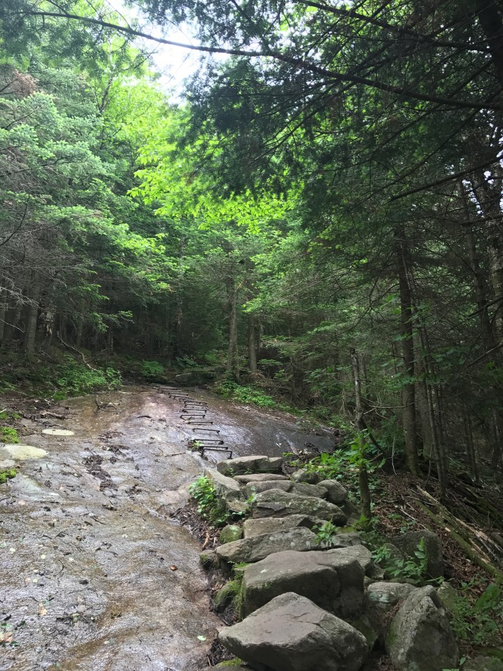 I was on the ridge (saddle?) walk over to smarts mountain when it started to rain, and I wondered why I was heading to the top of a mountain in the rain yet again. Thankfully it was just a passing drizzle and not a full on storm. The terrain was manageable for awhile and then it got steep.