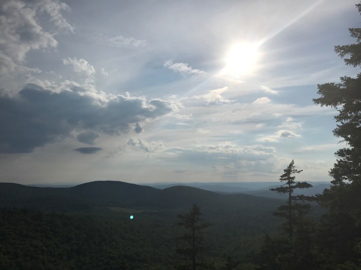 I strongly considered staying on top of the mountain to get another 360 degree sunrise and sunset, but I also didn’t feel like another night of staying up late and getting up early. I went down to the fire wardens cabin, which is now an AT shelter, and sat on the porch eating a snack trying to decide what to do. I felt claustrophobic and creeped out for some reason. It probably would have changed with the arrival of Lewis and Clark arrived, but I felt haunted. I put my feet up and considered my options. I kind of wanted to catch up with halfway and get to the hostel tomorrow (Friday) for a whole night of charging my phone and uploading blog stuff instead of just cramming it into a few hours in the middle of saturday. With that in mind, I decided to push on even though I felt wary about overdoing it.