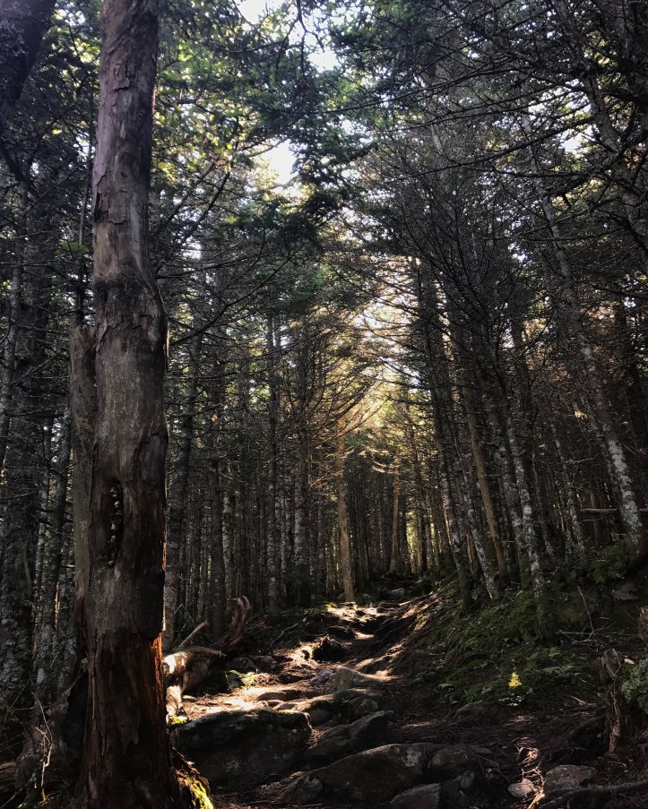 I came to a split in the trail with a sign saying “moosilauke summit 3.7 miles.” My stomach dropped and I said aloud “okay here we go.” For whatever reason, my mind went to the scene in tri-wizard tournament where harry is in the cemetery with Voldemort and apparitions of his loved ones emerge while Harry fends off the spells from Voldemort’s wand. I reflexively started imagining comforting people from my life walking around me as the trail climbed. I felt a jumble of emotions because those people are all far away, which made me lonely, but imagining them on the trail made me feel safe and stronger. Enter the crying. But it’s hard to hike uphill and breathe while crying so it didn’t last long.