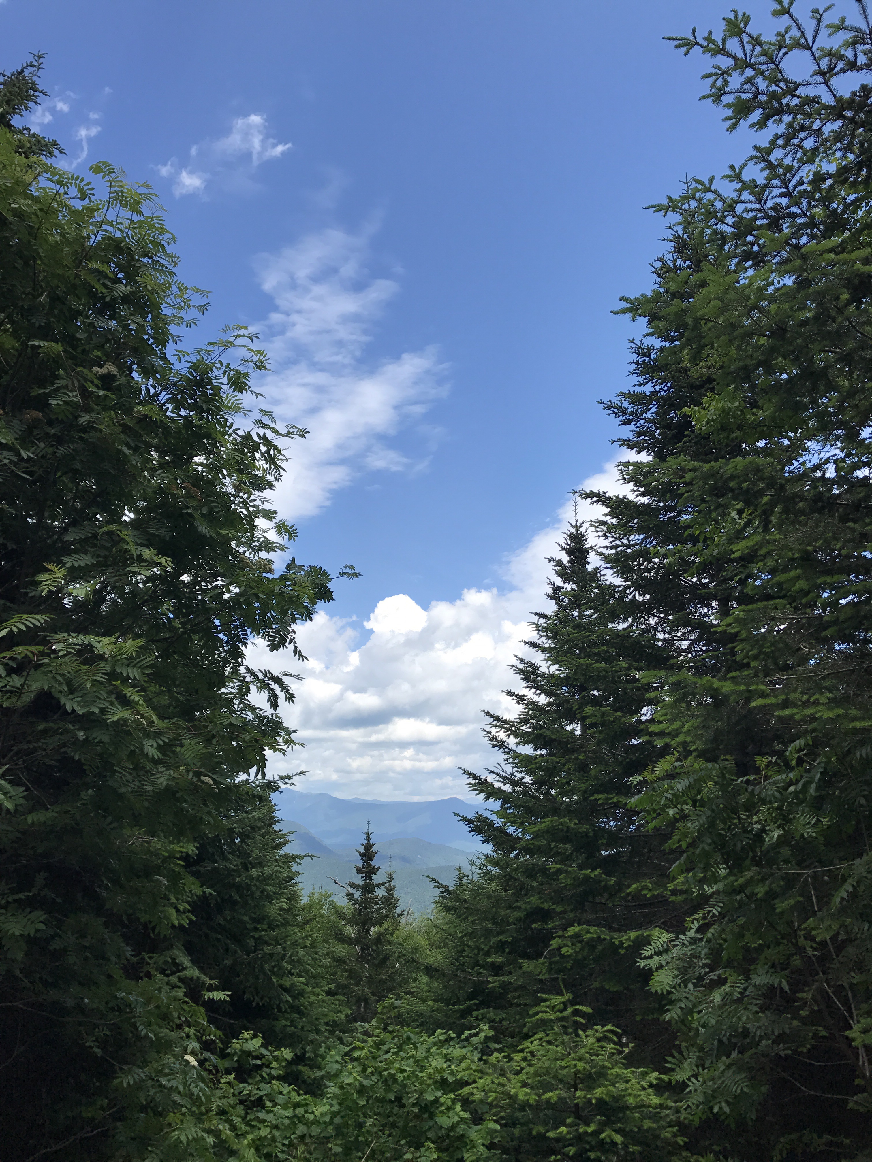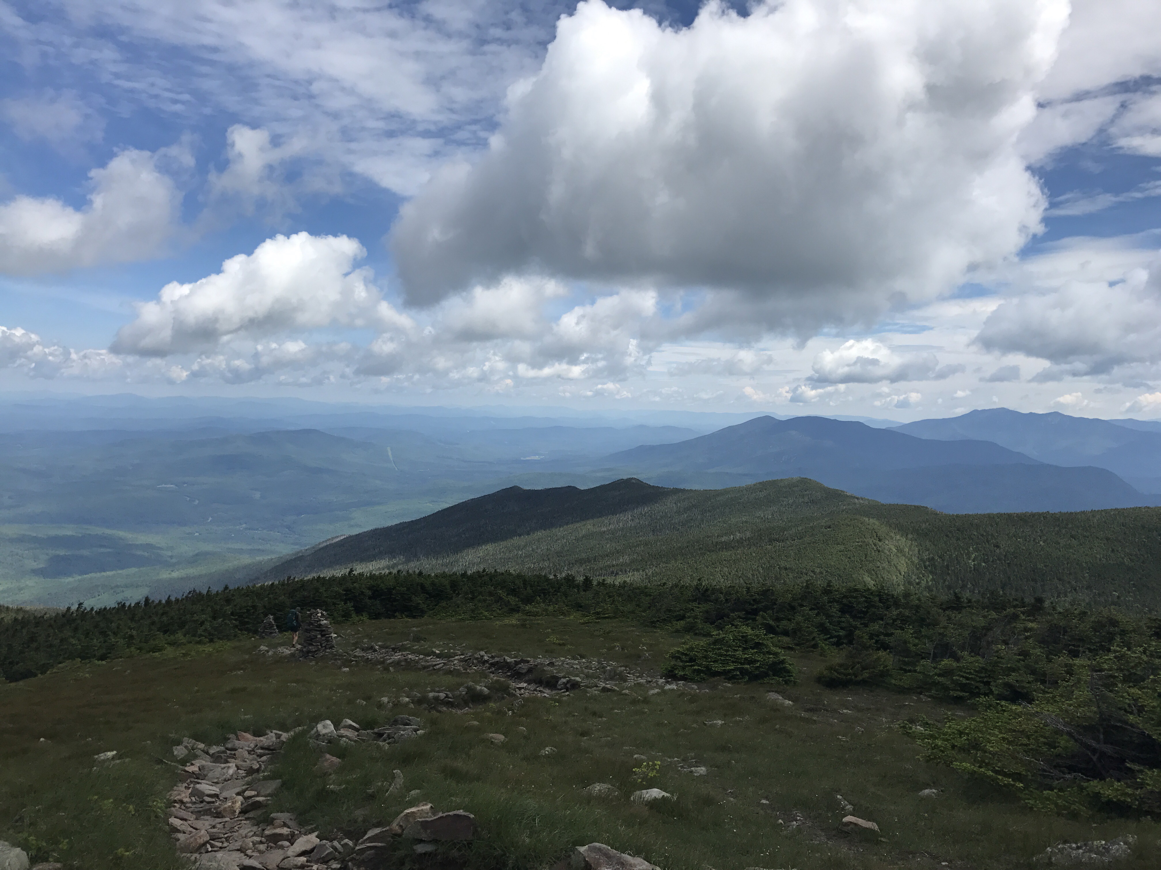 The trail crossed the road that runs through kinsman notch where I got another view of moosilauke. Then came a very steep climb up from the road. I ran into Walden sitting on a rock taking a break. We quickly figured out that I’m faster on the hills, so I pulled ahead as we made our way up what I had expected to be a manageable mountain. Silly me. We ran into an older couple eating snacks on a rock in the middle of the trail. They asked how we were and I told them I was daydreaming about popsicles as the sweat streamed down my face.