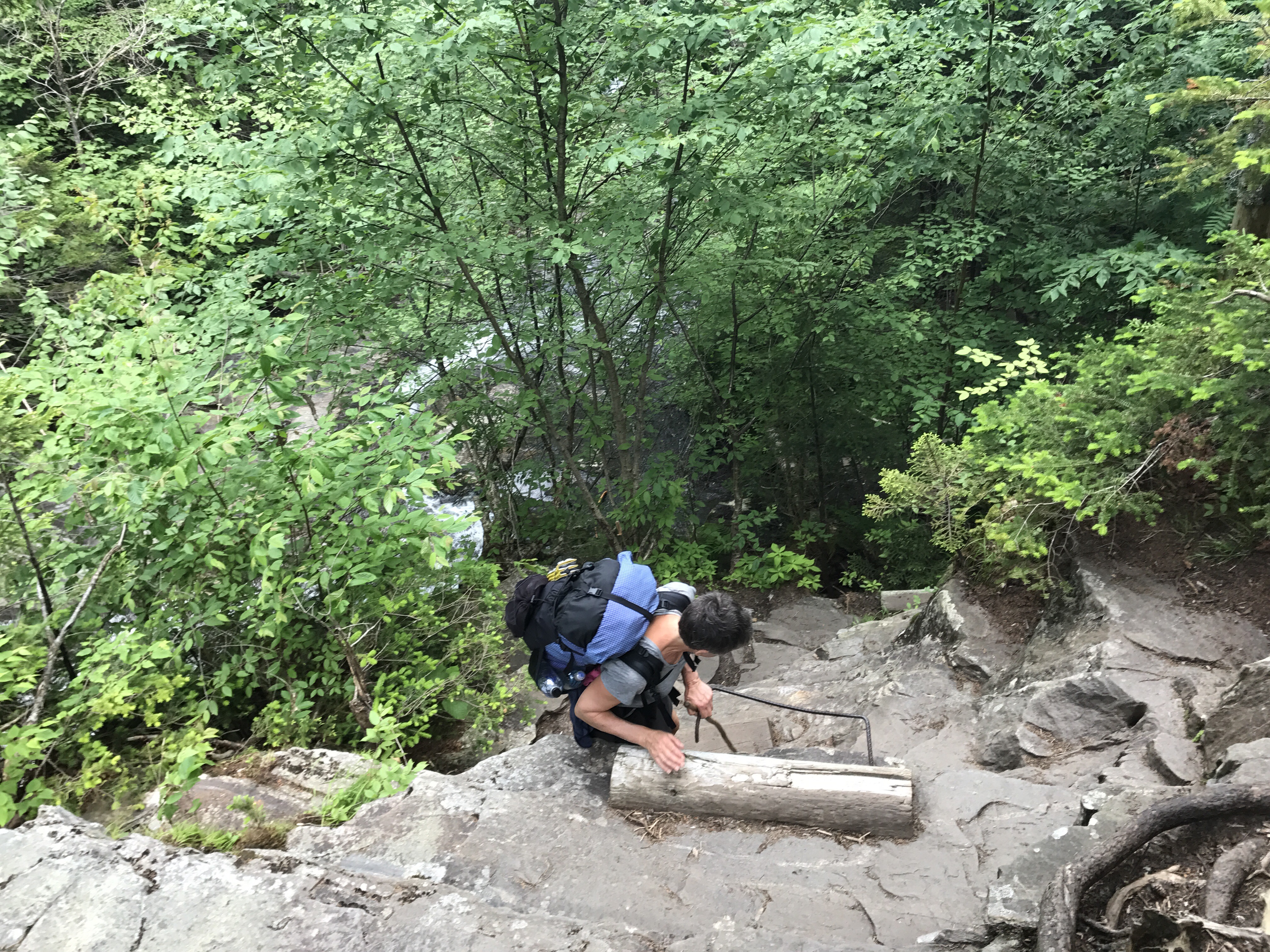 A few day hikers filtered in and out as we ate. Walden cooked grits and an egg, which I felt envious of. A pair of teachers talked to us as we ate. I had hoped one of them would share her giant bag of chocolate, but instead she offered us toilet paper, which we both declined. Then we continued the long walk down the mountain. There were times when I felt like I was practically standing on my head, but the steps along the boulders were not as treacherous as they looked in the pictures halfway sent. He’s about a day ahead of me and warned me about the time and effort it took him to get down the mountain.