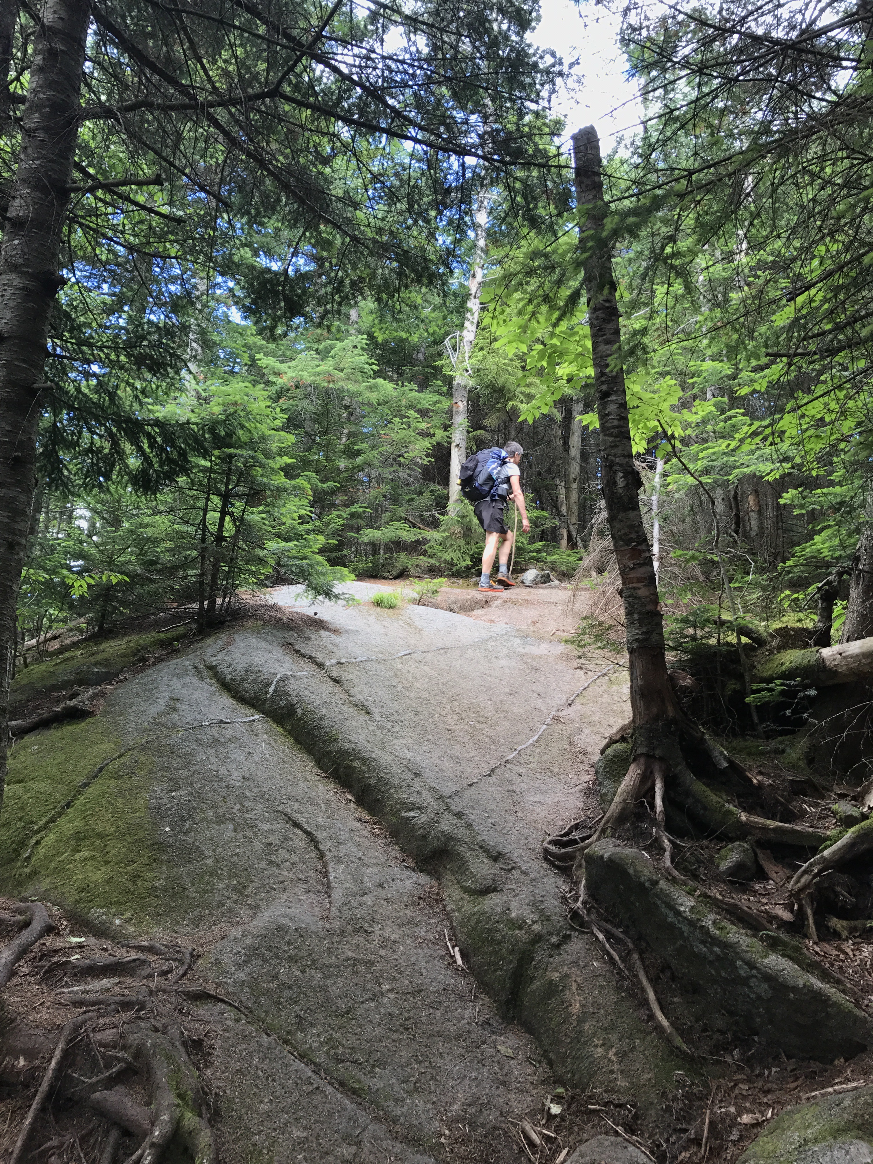 The trail eventually “flattened” out to a neverending series of boulders that made for incredibly slow going and required just as much care and focus as descending moosilauke. The miles crept by as the hour grew later and later. Stealth spots were few and far between, and I didn’t really have enough water to stop short of the shelter. I also stubbornly wanted to make it all the way there so I could stay in line with floater and company.