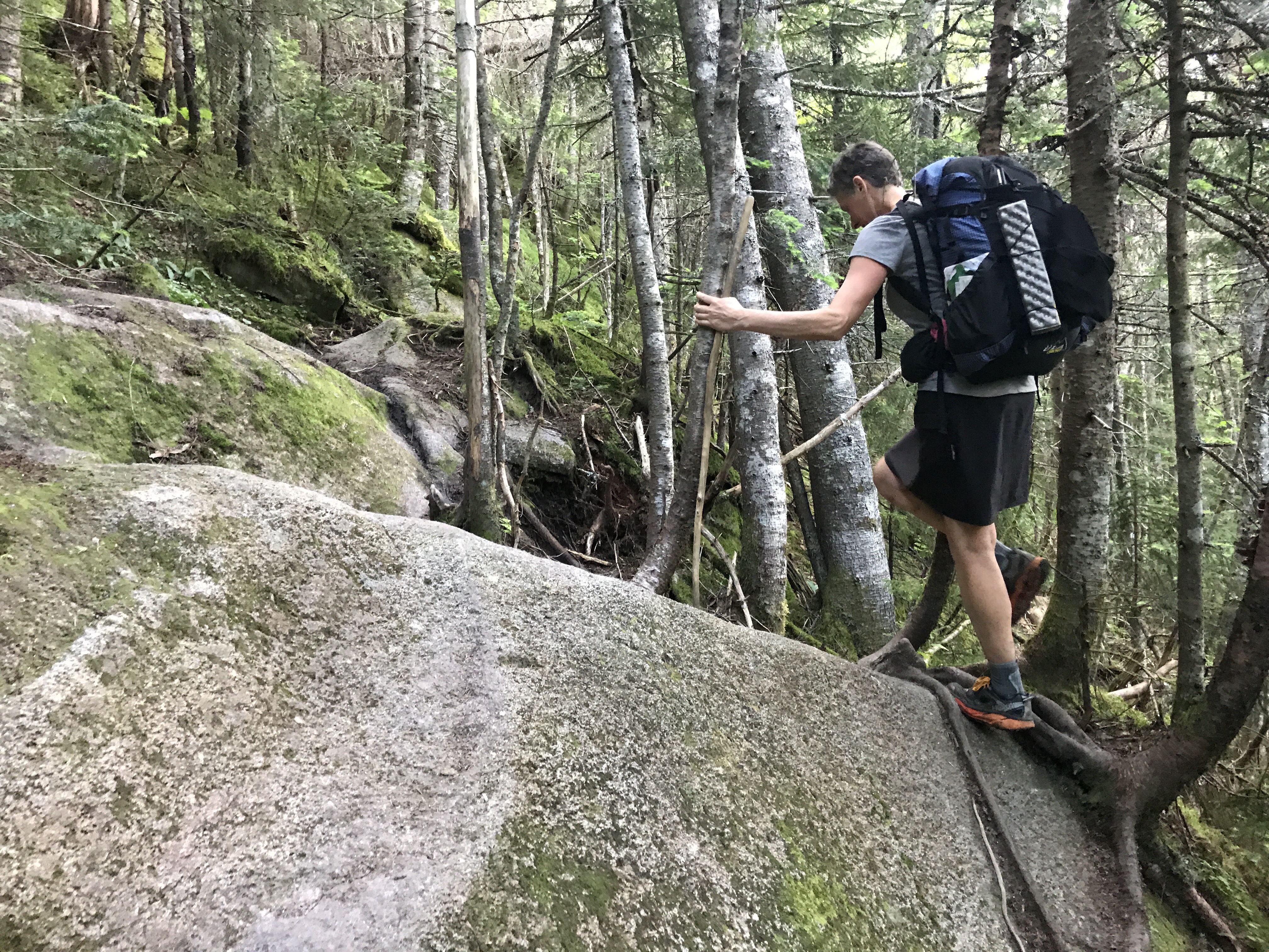 I think this was the same point at which I tossed my poles down and one of them went skittering over the side of the trail. Thankfully it was easy enough to reach. Walden retrieved it for me as I inched my way down the boulder.