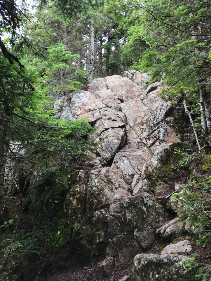 Then came the steep climb to Webster Cliffs. I felt grateful to be scrambling up the sheer boulders rather than trying to find my way down them with little footing to work with beyond the exposed roots of nearby trees (the picture is of an easier section with much more in the way of defined steps).