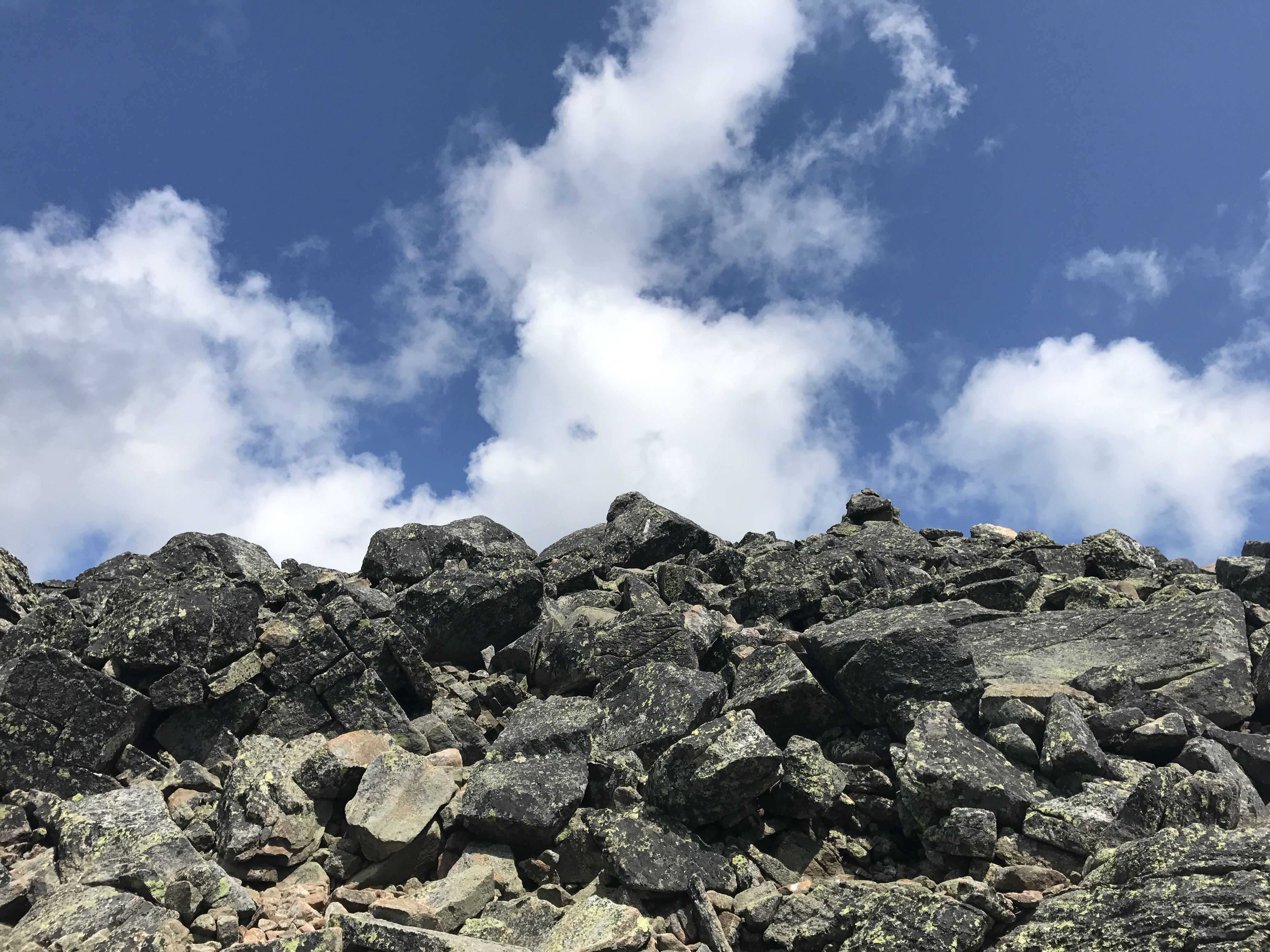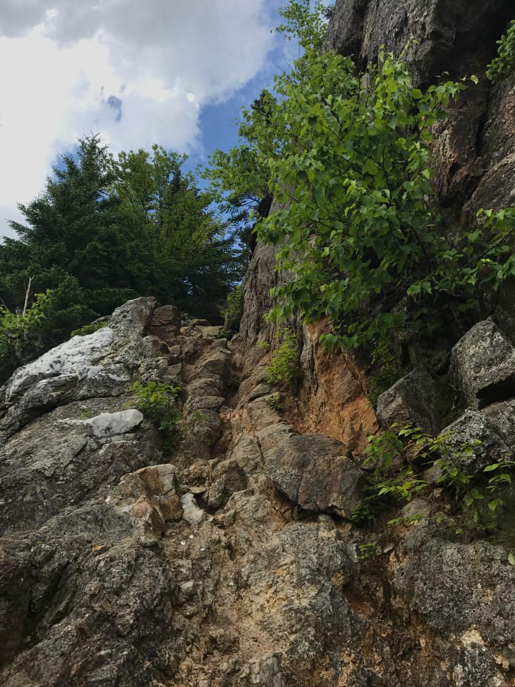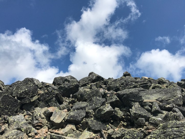 I hit the trail by about 845, and immediately came face to face with the wall of rocks known as mount Madison. It’s straight up and then straight down, and I was very grateful to have not continued on during or after yesterday’s rain shower. A lot of the rocks in NH have a bit of tooth to them, so they aren’t as slick as they could be, but falling on them would be bad news because there are jagged edges everywhere you look.