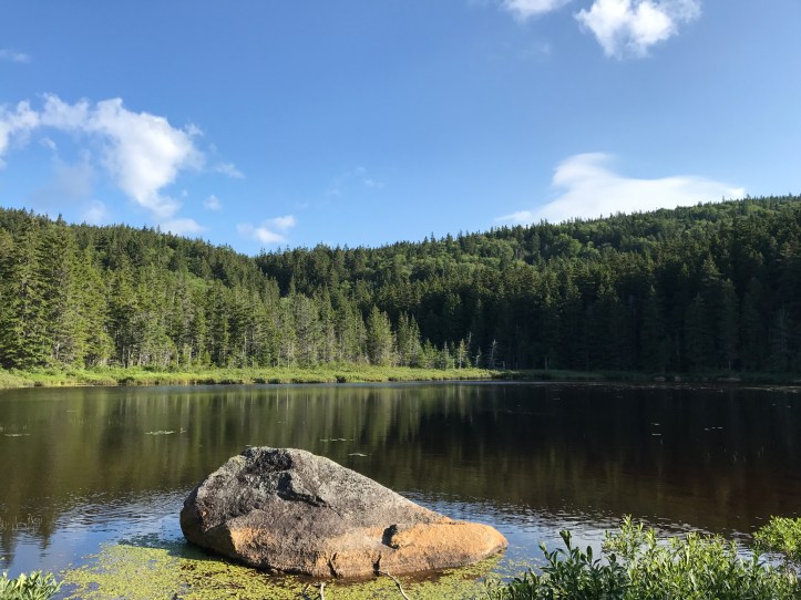The trail went from traditional footing to scaling rock faces nearly 2 miles south of saddleback’s summit. I couldn’t fathom having to walk straight up for two miles with my energy levels so low, but I didn’t really have a choice, so I kept putting one foot in front of the other. As the trail skirted the edge of another pond, I heard the loud laughter and frivolity of a teen group.