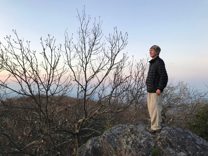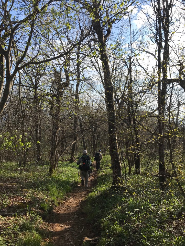 At the start of the long climb up to Kelly’s knob, I saw another Tanager. A young woman that i’d seen at the bottom of the hill caught up with me and asked what I was looking at as I stood gawking up at the canopy. Then we chugged up the never-ending hill. She had no poles, which just confuses me, so I asked her about it. she said she thought they were annoying. Craziness but YDY (“you do you”).