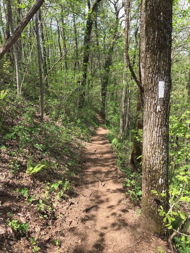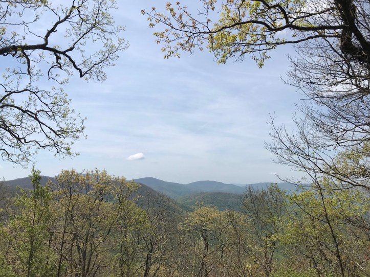 I came upon a side trail that led to a view, but people on guthook said things about rattlesnakes nesting in the rocks. I’ve seen enough mountains for today, I think I shall pass on the opportunity to run into snakes. Then came the greener section of trail with a nice light breeze, which was a relief until the trail started a long and meandering descent into dicks creek gap.